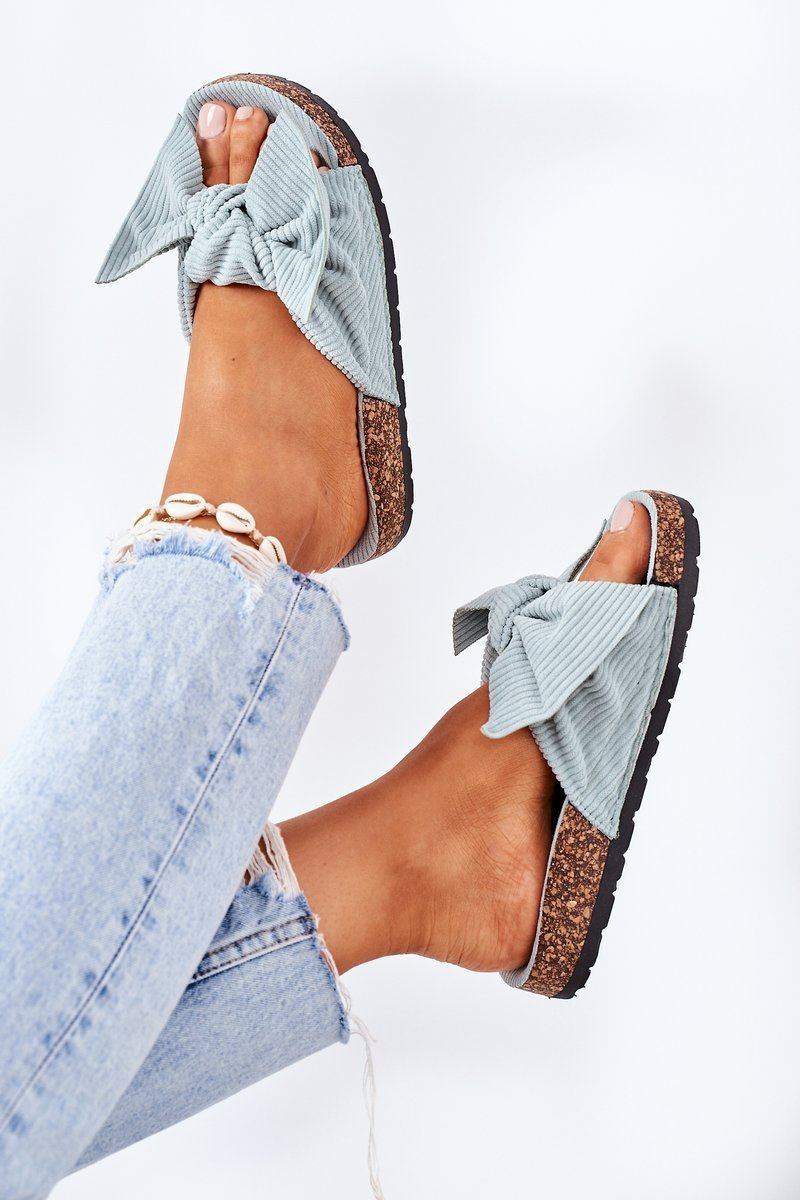 Corduroy Slippers On The Cork Sole Light Green Summertime