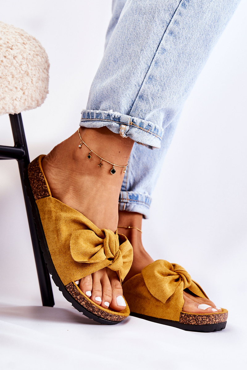 Beautiful flip-flops on a cork sole. The shoes have a contoured insole that will guarantee maximum comfort. The upper is made of soft eco-suede pleasant to the touch. The sole is made of plastic. A charming bow on the front. The flip-flops will work well both for everyday wear to work or shopping, but also at home instead of slippers. Perfect for summer! The flip-flops are available in many beautiful colors! Please refer to the size chart when choosing your size.