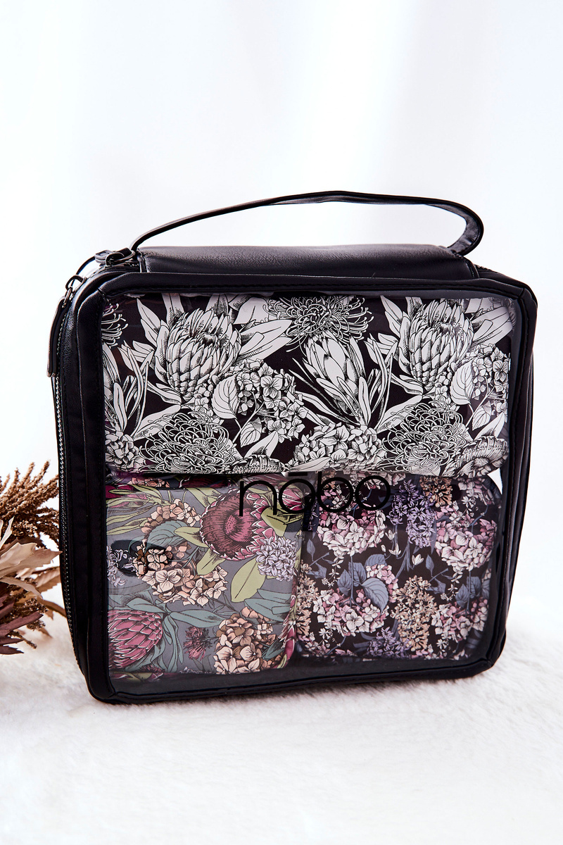 The cosmetic bag is made of ecological leather and transparent plastic. The compartment is closed with a zip. Additionally there are three smaller cosmetic bags in the bag - two square and one rectangular. A great 4-in-1 model, which can be used in many ways. The smaller vanity cases will fit perfectly into shoulder bags, so that you always have your most necessary cosmetics with you! They also have one zipped compartment, lined with the NOBO brand logo.