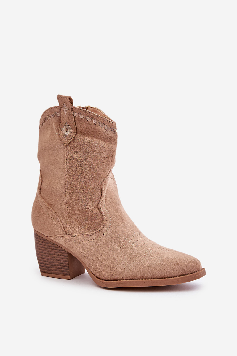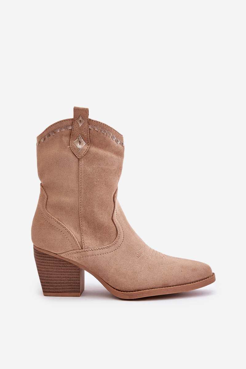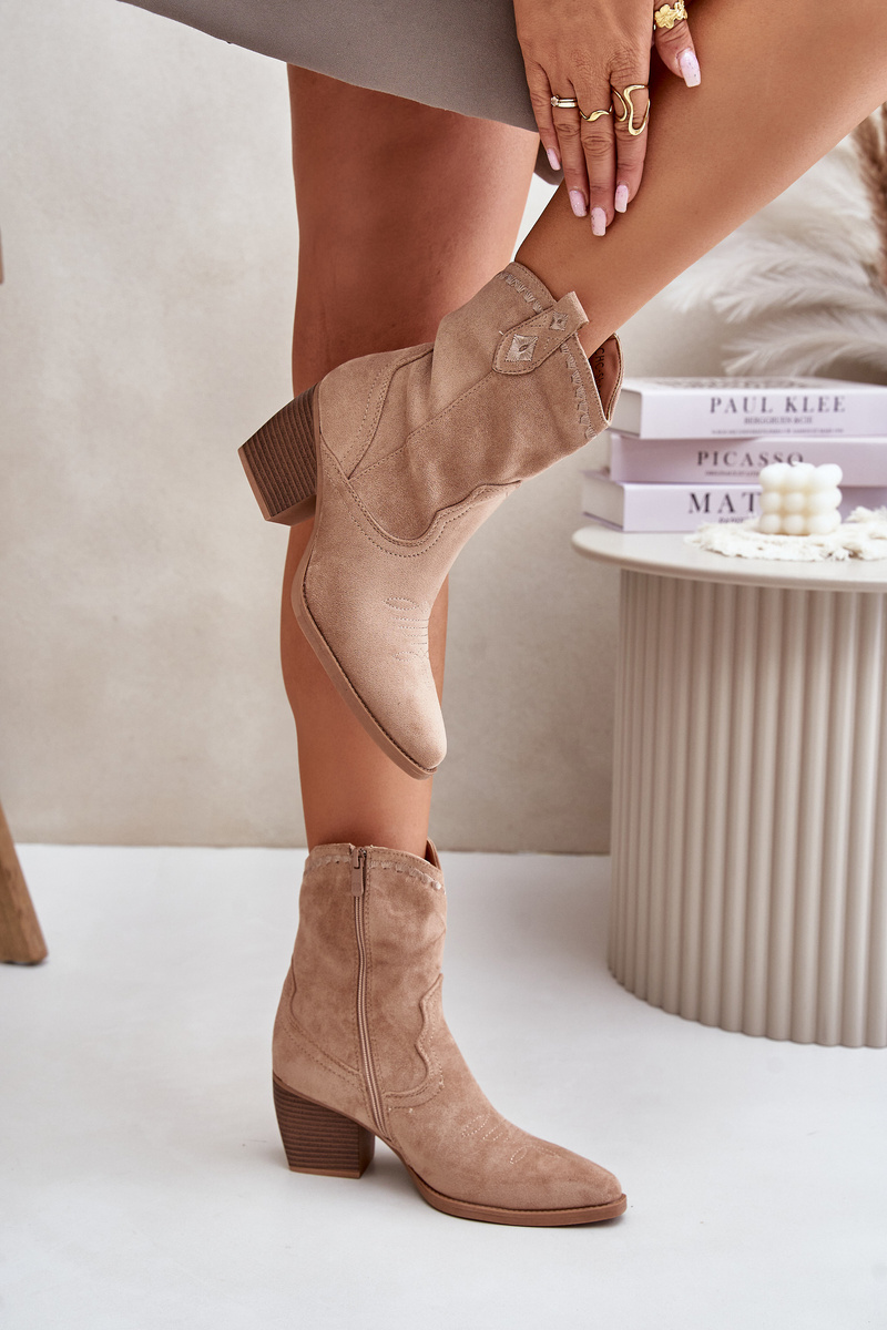 Cowboy Ankle Boots With Eco Suede Beige Narinae