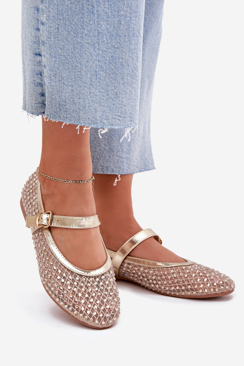 Decorated Women's Ballet Flats With Strap And Buckle Gold Avirae