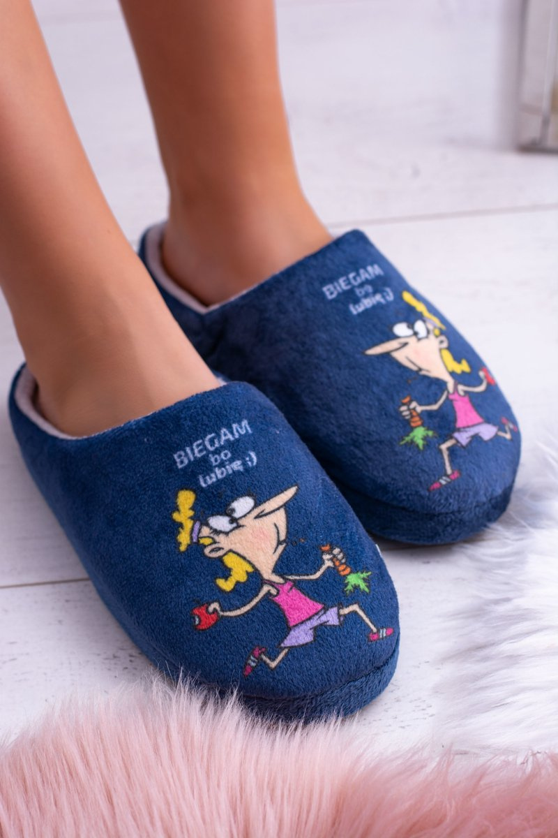 Dreex Plush Women's Navy Blue Slippers I Run Because I Like It
