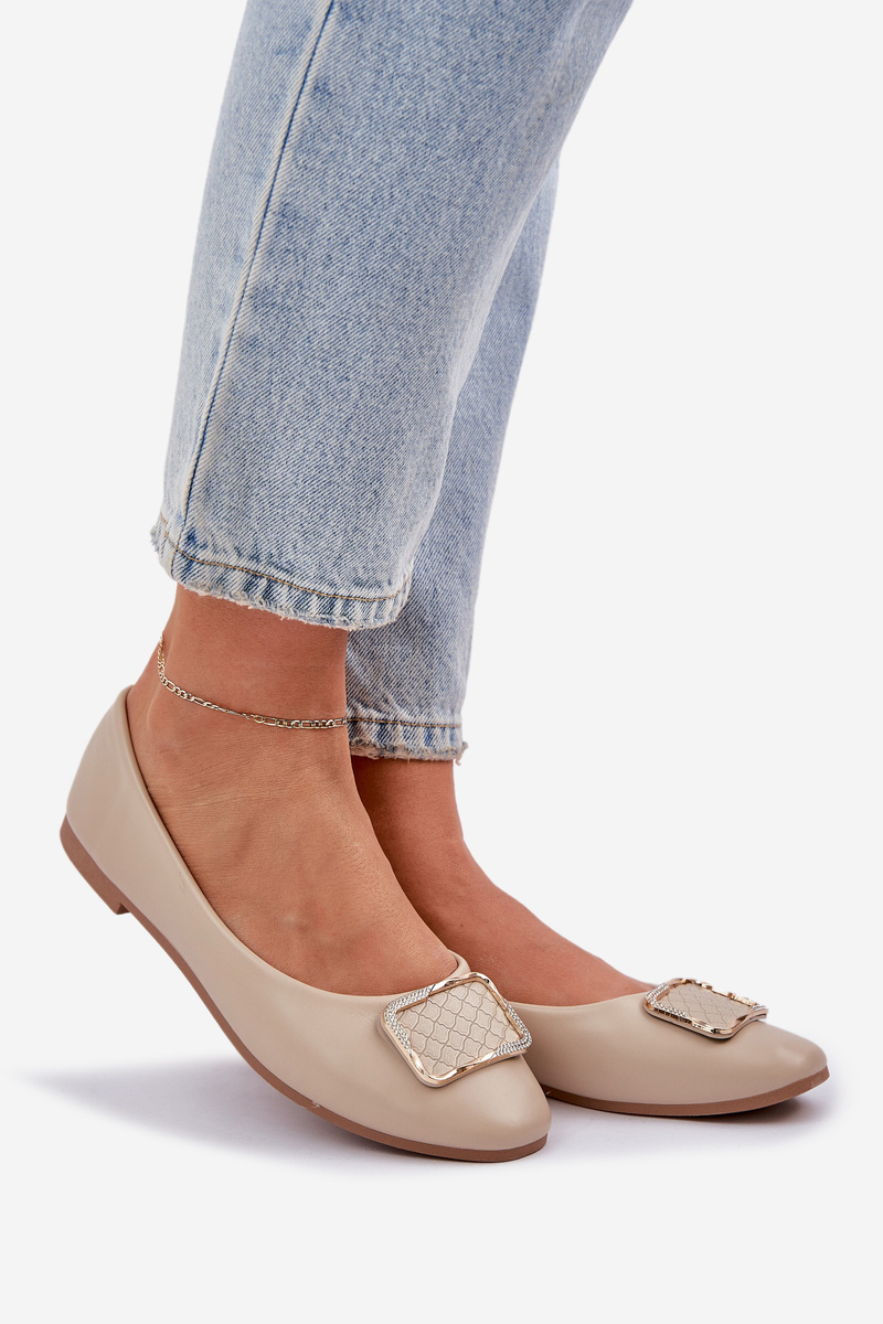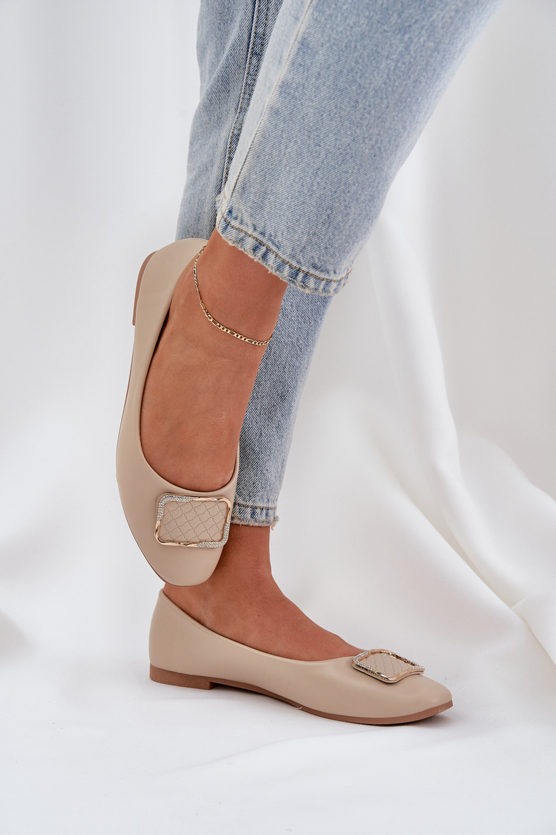 Eco Leather Ballet Flats With Decoration Beige Tulnelia