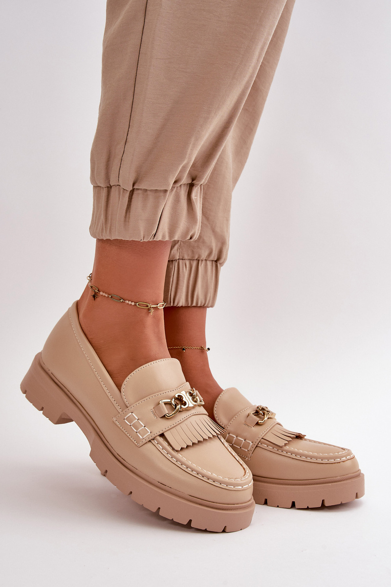 Eco Leather Women's Moccasins with Golden Decoration Beige Zanita
