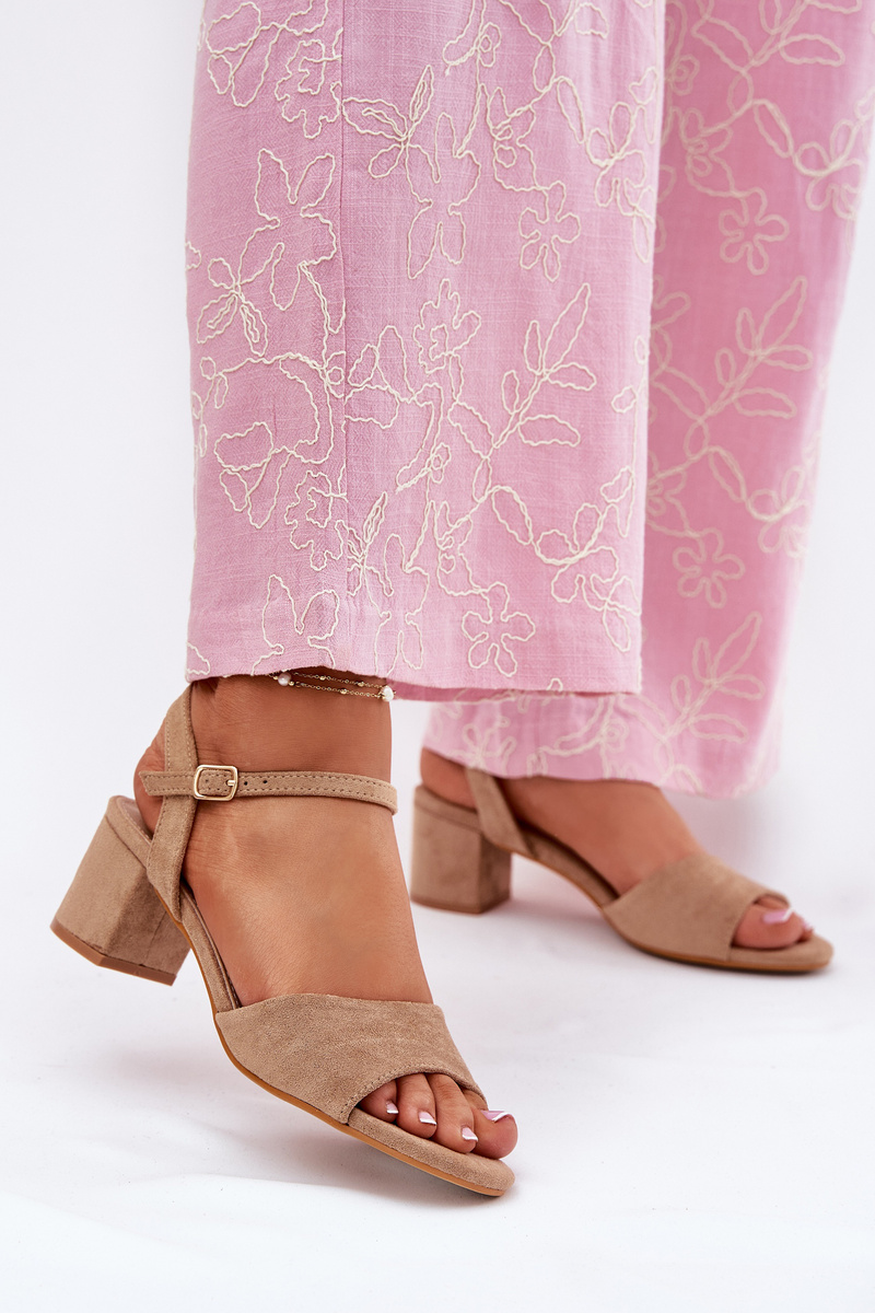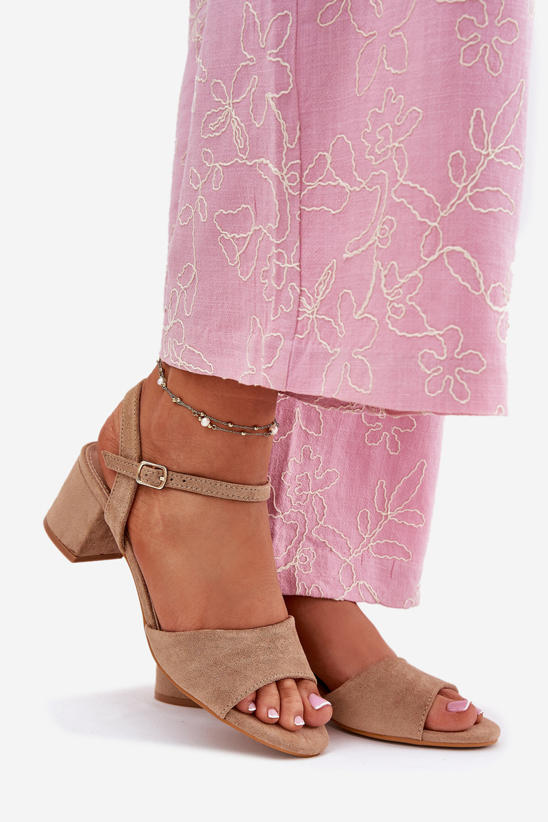 Women's sandals made of soft-touch eco suede. The low block heel provides excellent stability. The adjustable strap with a buckle allows for a perfect fit. They pair perfectly with summer dresses, skirts, and pants! When choosing a size, please refer to the size chart.
