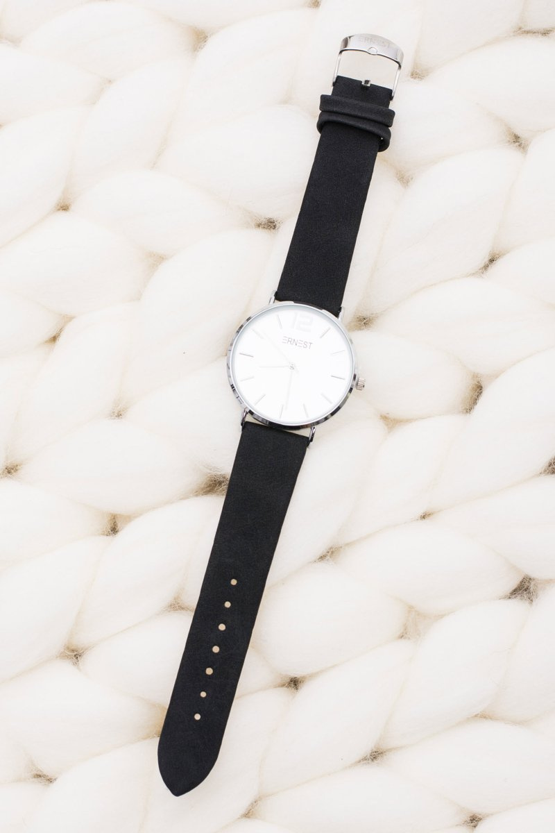 Elegant Leather Black Women's Ernest Watch