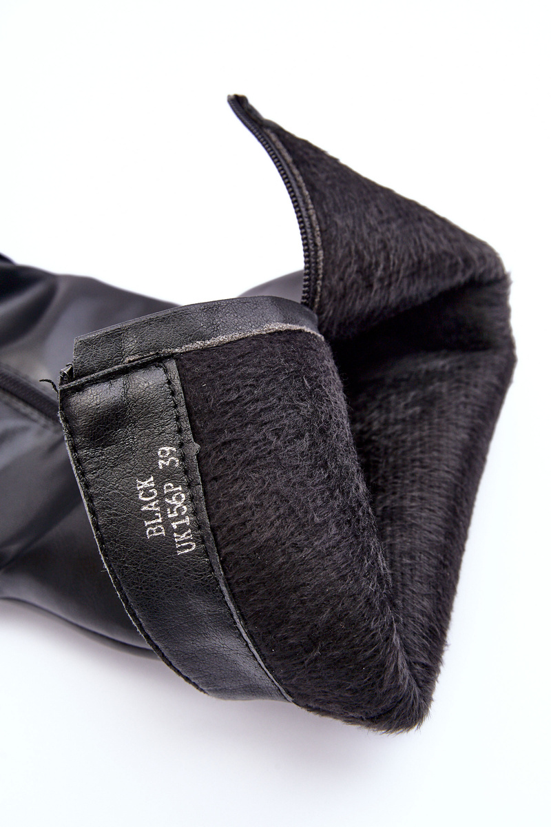 Elegant women's boots with a knee-high shaft. Made of eco-leather. Set on a stiletto heel. Zipped on the inside of the shaft. The inside is insulated with a shoe lining. The toe of this shoe is stiffened. You can use them in many outfits! When choosing a size, please refer to the size chart.