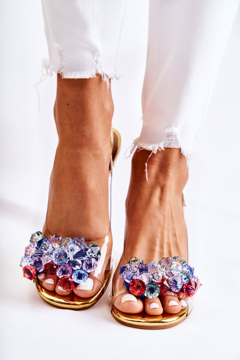 Lovely high heels in the form of a transparent post. They have an ornament in the form of imitation crystals on the front of the footwear. The soft and profiled insole is made of natural leather. Comfort is the key! Fashionable cut will delight many lovers of high heels! You absolutely should have this model in your footwear collection! When choosing a size, please use the size chart.
