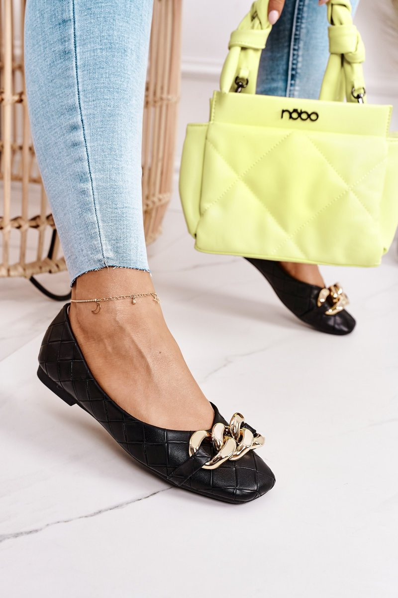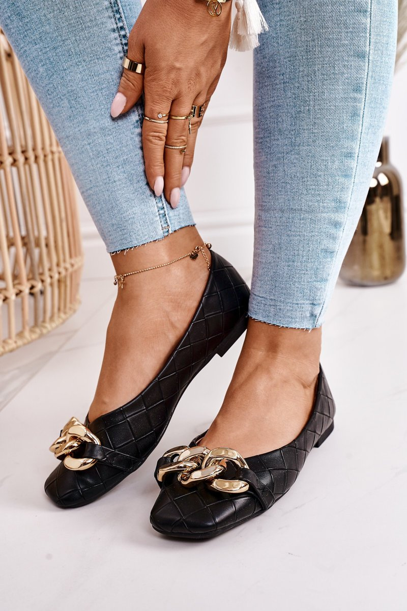 Beautiful quilted ballerinas with a chain. The shoes are very light and comfortable, made of eco leather. The soft insole and non-slip sole ensure comfort. Be sure to check out our entire collection of women's ballerinas. When choosing sizes, please use the size chart.