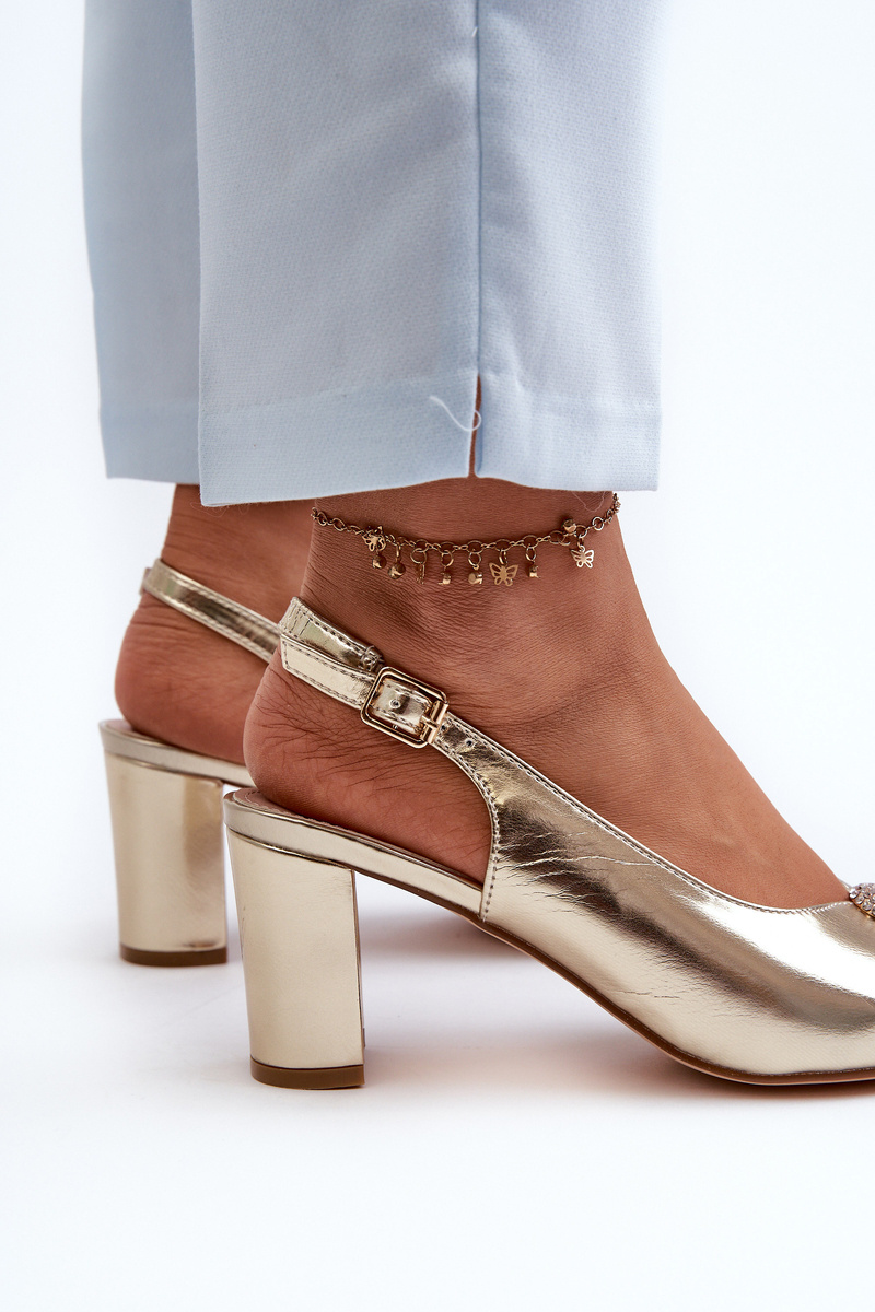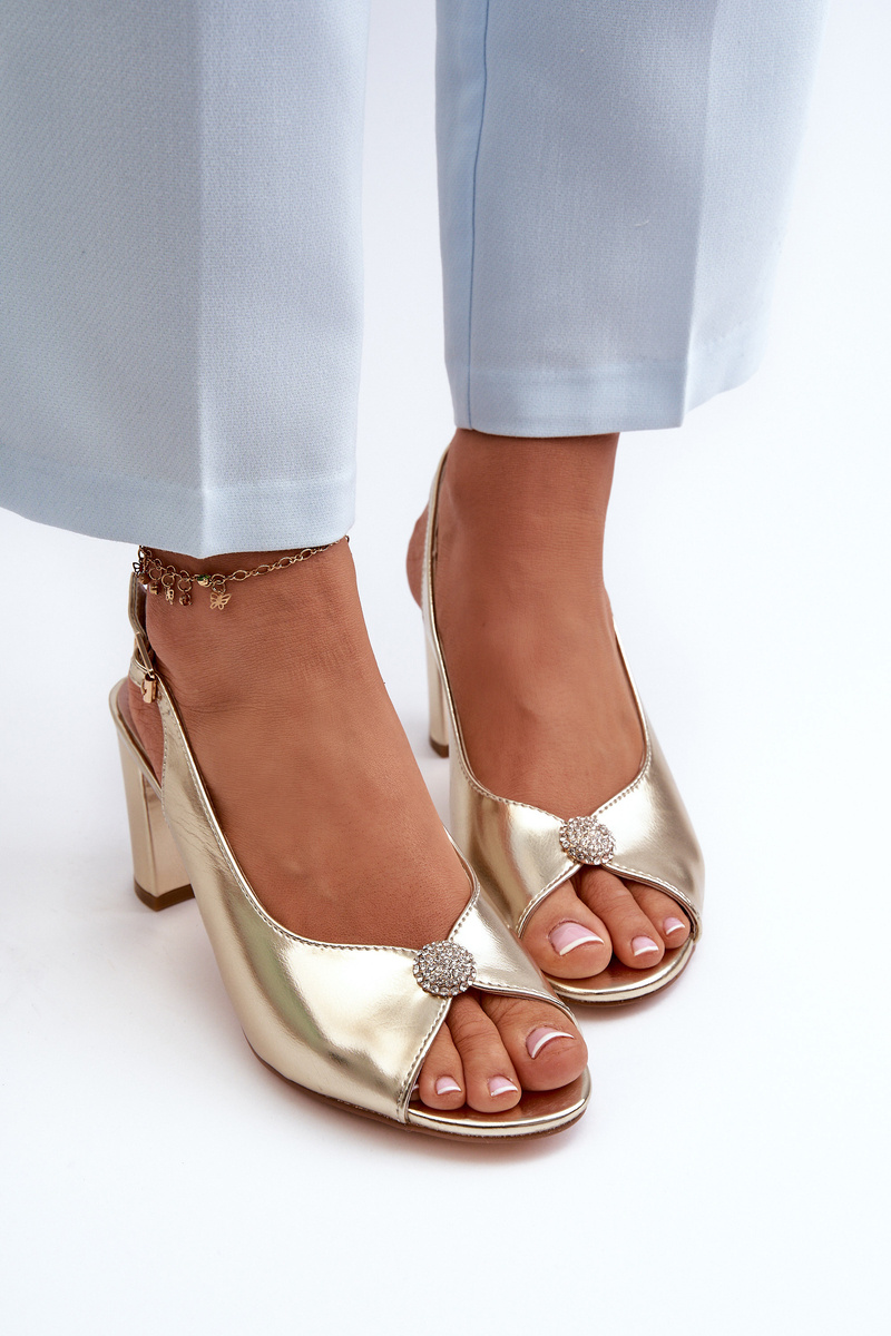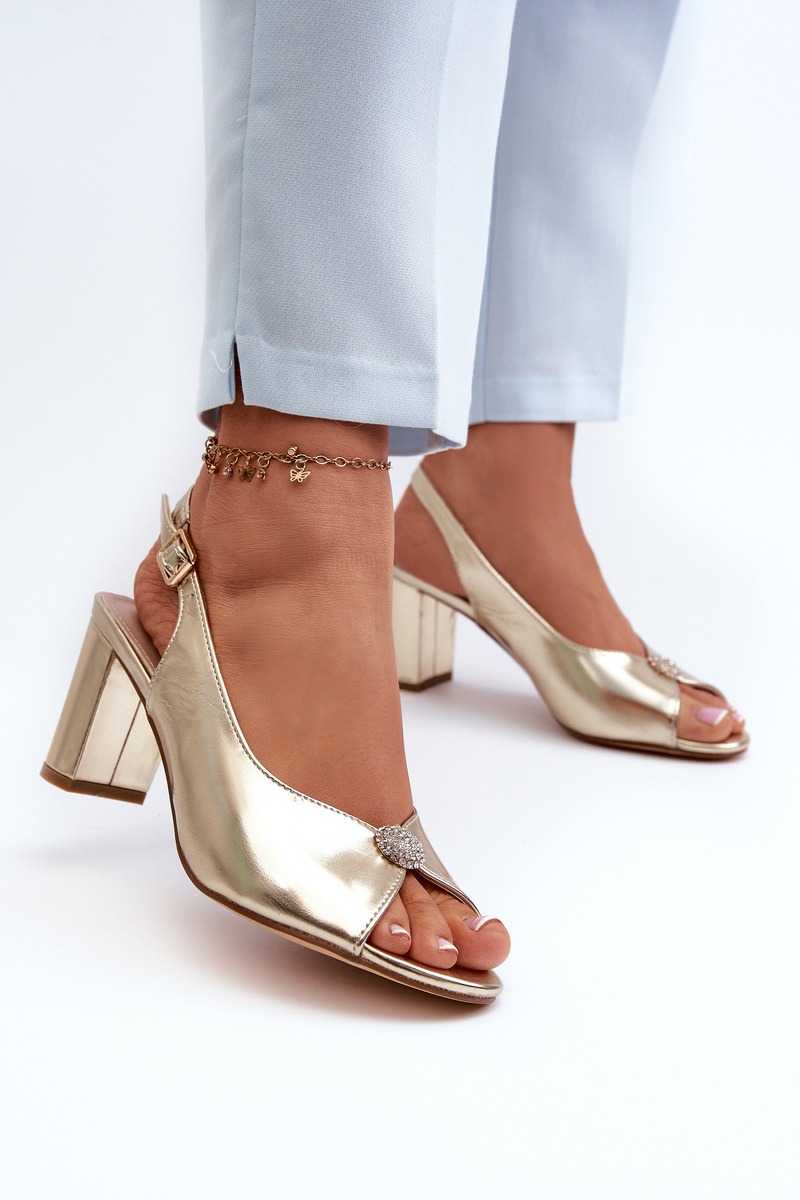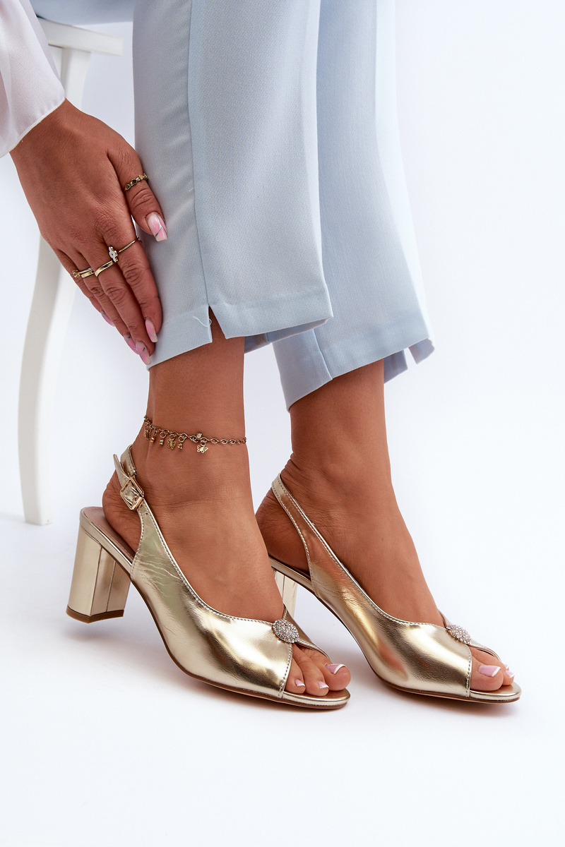 Elegant Sandals with Heel and Gold Decoration Trasea