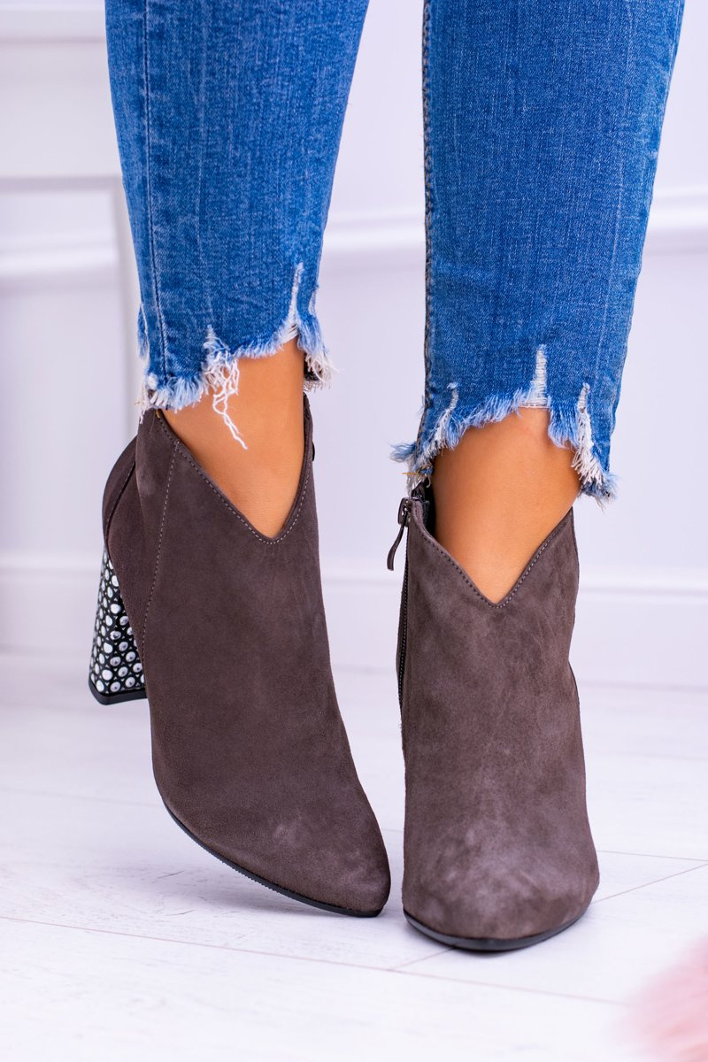 Extremely fashionable boots this season! Unique style and elegant workmanship will make them one of the most sought-after models of the season! The upper is made of suede, and the insole is insulated with shoe blanket. The use of a soft lining and a stable post will increase the feeling of comfort. Classic design and always fashionable color - this is something you must have! Do not wait any longer and buy now at a great price!