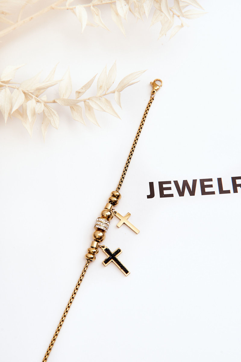 A unique and elegant women's bracelet made of stainless steel. It has the ability to adjust the length. Bracelet with a delicate weave with more massive decorations in the form of crosses and zircons. It looks extremely elegant. You can wear it as an addition to many styles. Be sure to also check out our other offer of available jewelry models. Great model, you must have it!