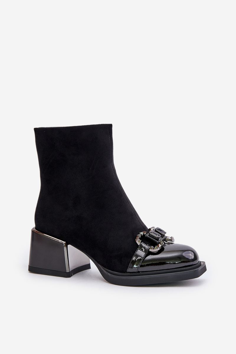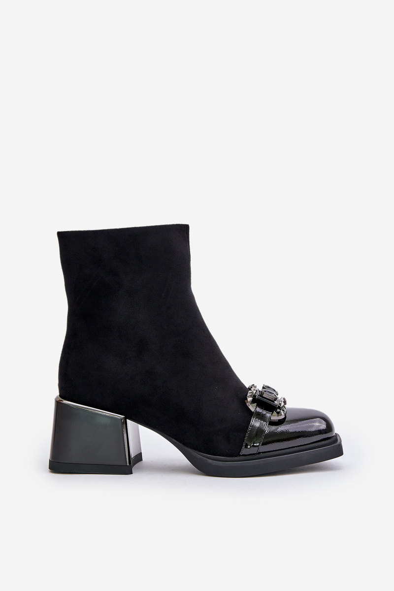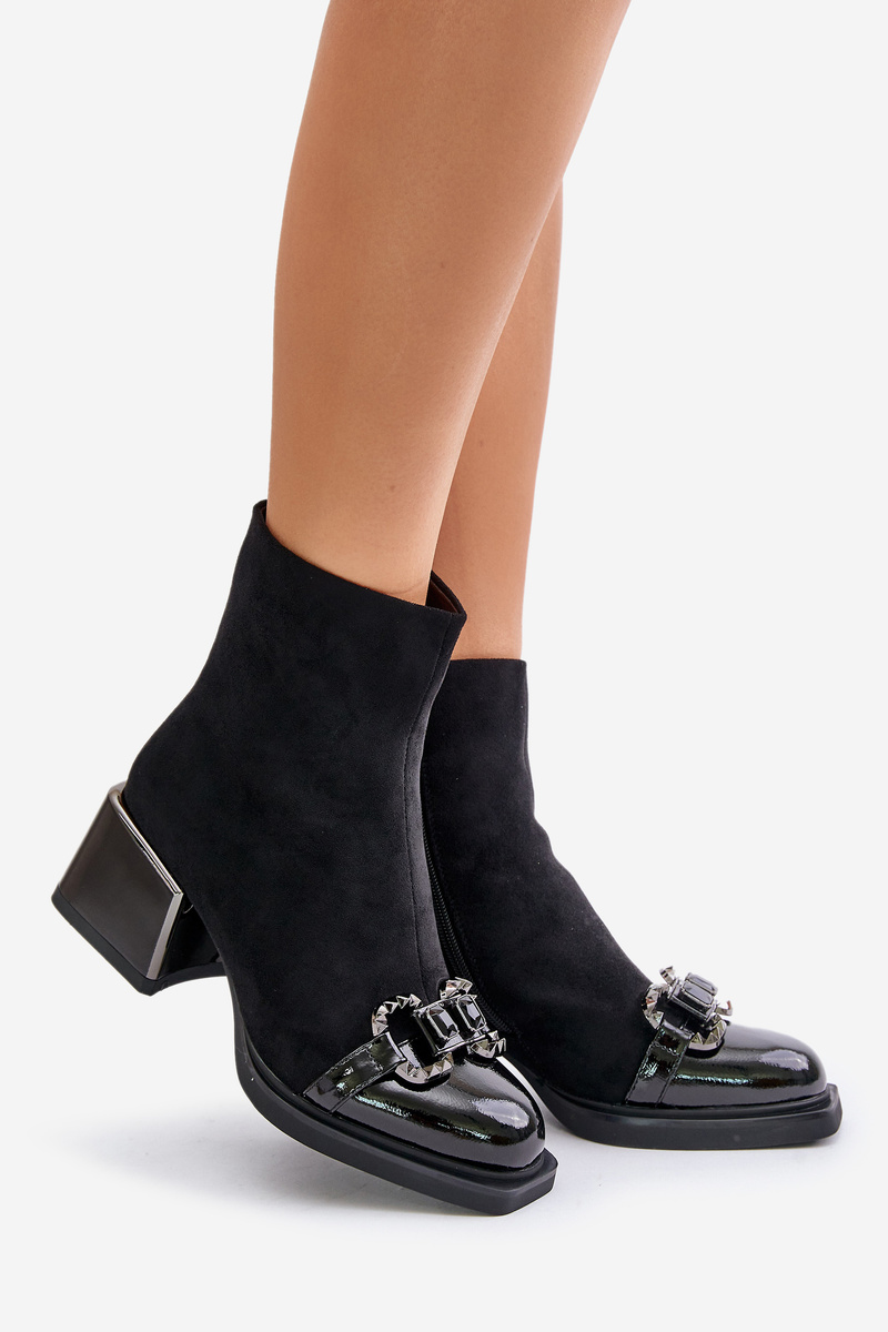 Elegant Women's Heeled Ankle Boots With Decoration Black MR880-127