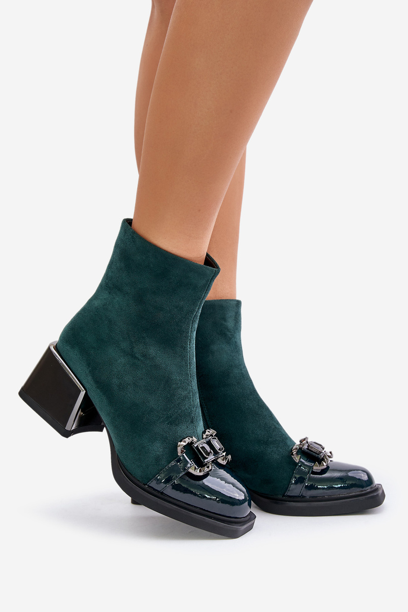 Elegant Women's Heeled Boots with Decoration Dark Green MR880-127