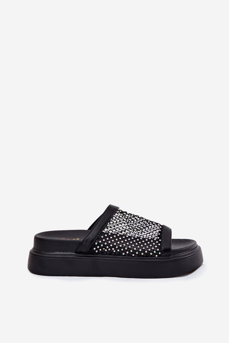 Embellished Women's Platform Slippers With Mesh Black S.Barski MY51-016