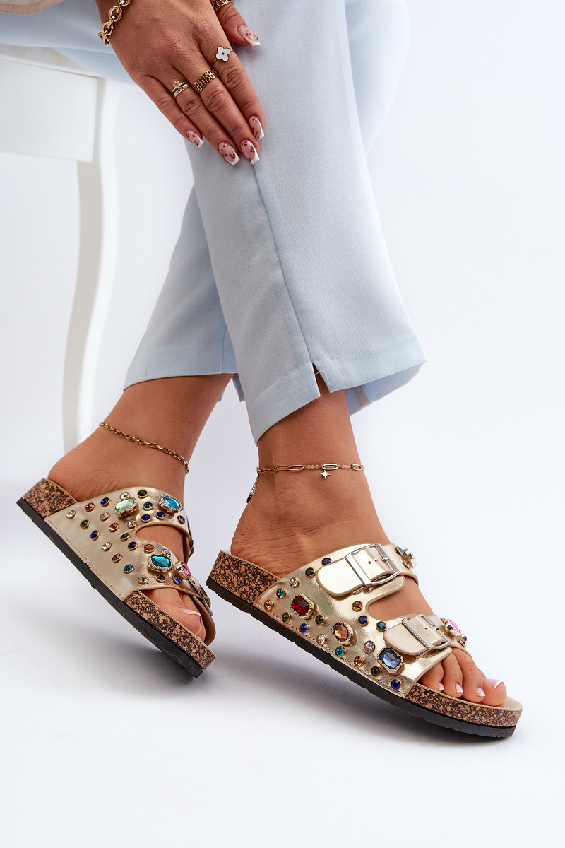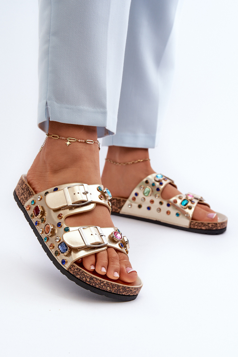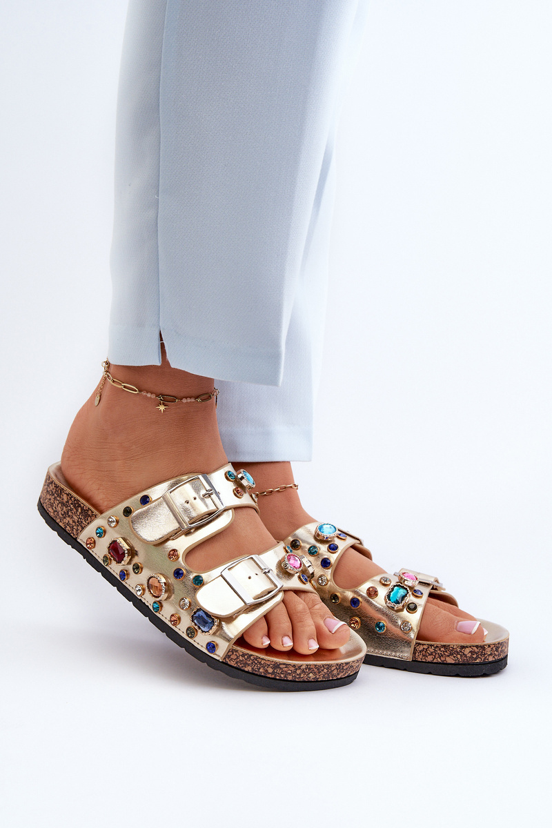 Embellished Women's Slides With Buckles S.Barski MY121 Gold
