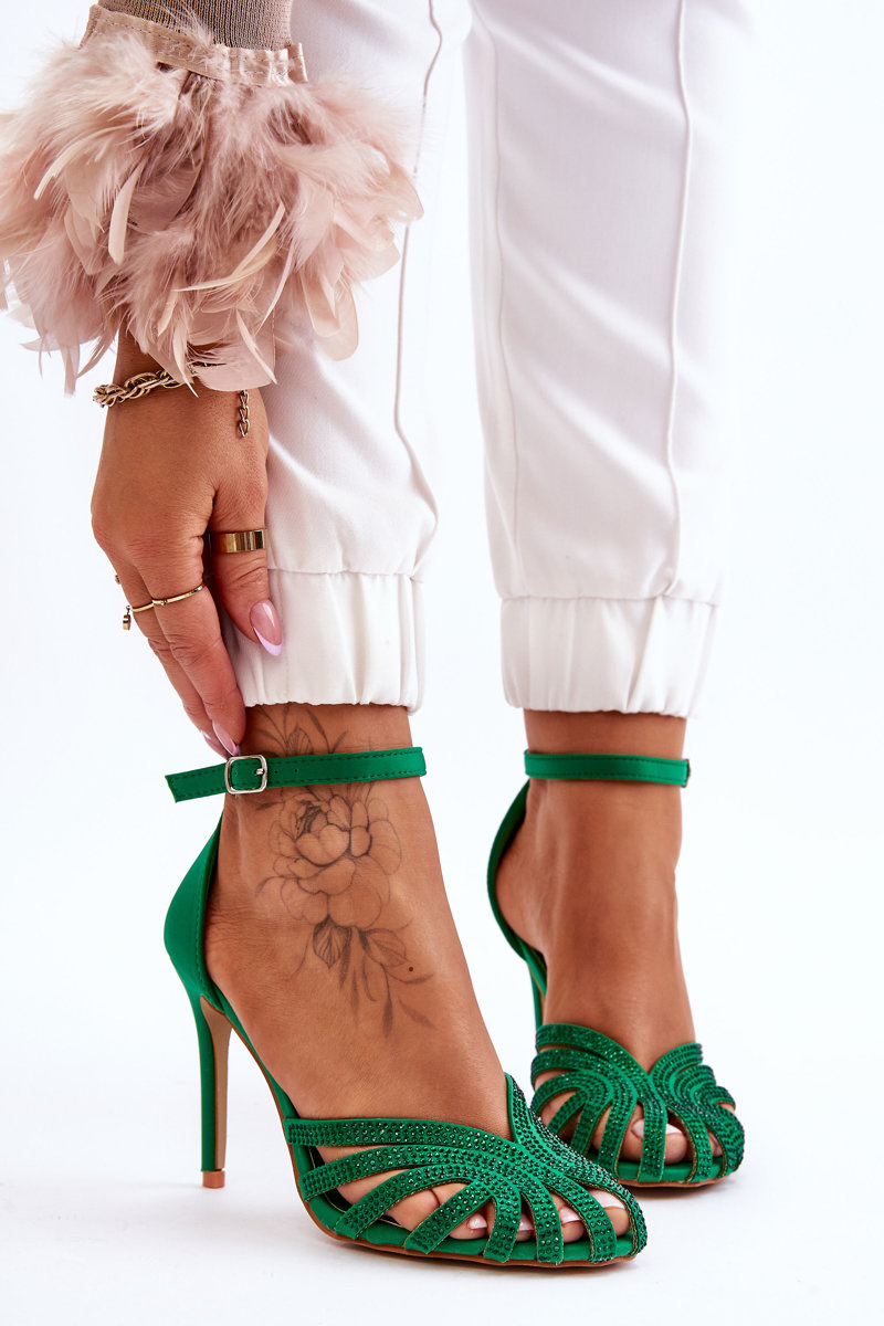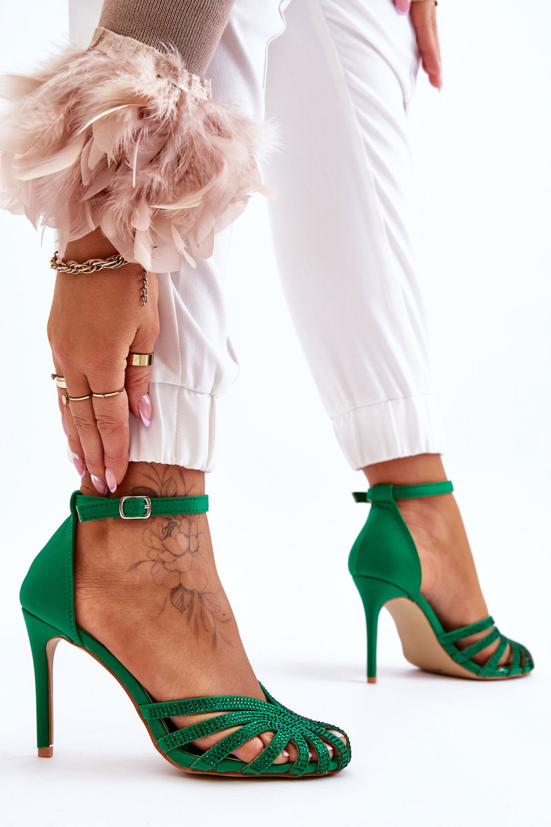 Perfect heels for summer days! Made of textile material. Model fastened with a buckle with an adjustable strap. The pumps were mounted on a pin, which perfectly slims and optically lengthens the legs. Stiffened heel counter allows for proper stabilization of the foot. These heels will look perfect in combination with elegant stylizations! When choosing a size, please refer to the size table