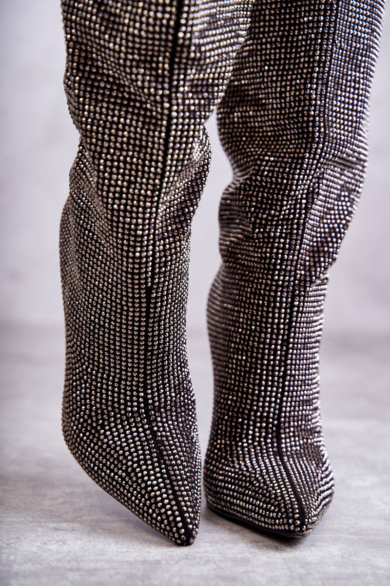 Amazing boots for women who like to stand out from the crowd! They were made of material. Decorations in the form of rhinestones imitating zircons are located on the entire upper. Boots were mounted on a heel in the form of a stiletto. Insulated inside with a nice-to-touch footwear blanket. The stiffened heel counter ensures proper foot stabilization. When choosing a size, please use the size chart.