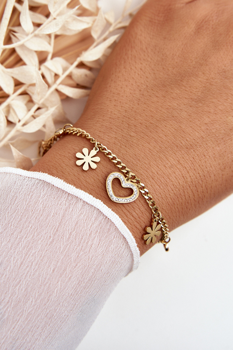 Fashionable Bracelet With Flowers And Heart Gold