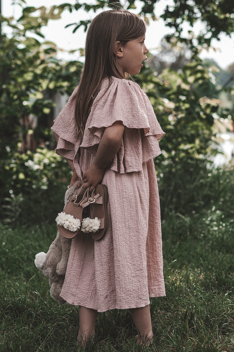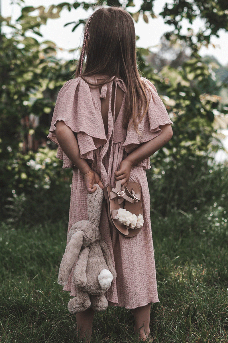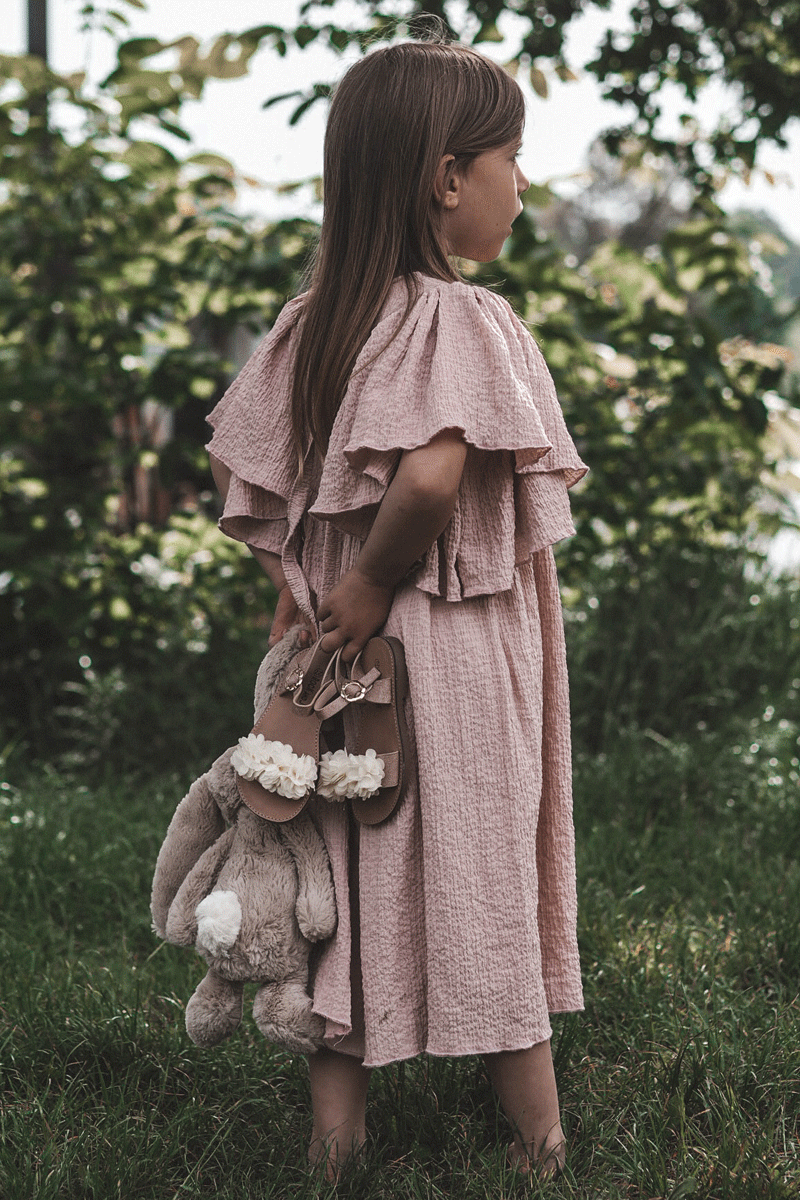 Fashionable Children's Sandals With Flowers Beige-gold Poly