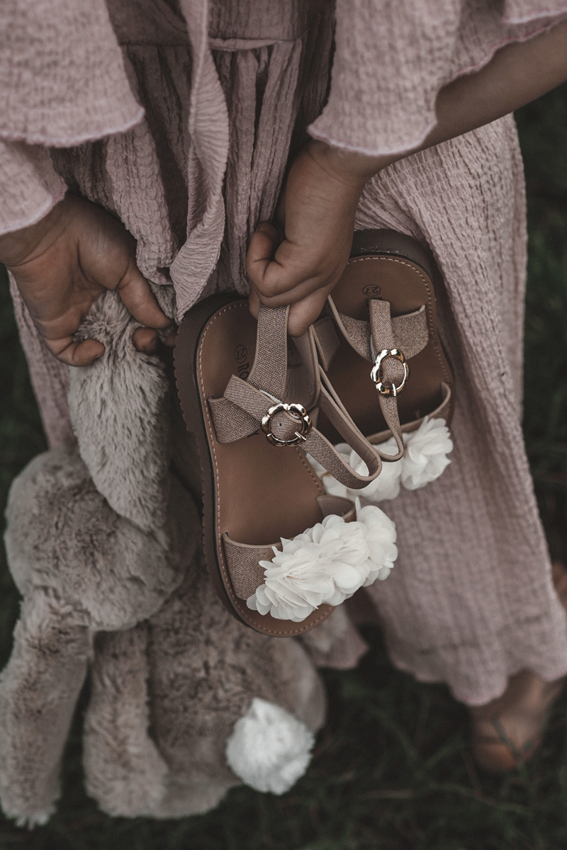 Beautiful children's sandals are made of a plastic upper. The open toe and heel allow for proper ventilation of the footwear. Fastened with an adjustable strap with a buckle. The front stripe is decorated with flowers. The sole is made of rubber and is non-slip. When choosing a size, please refer to the size chart.
