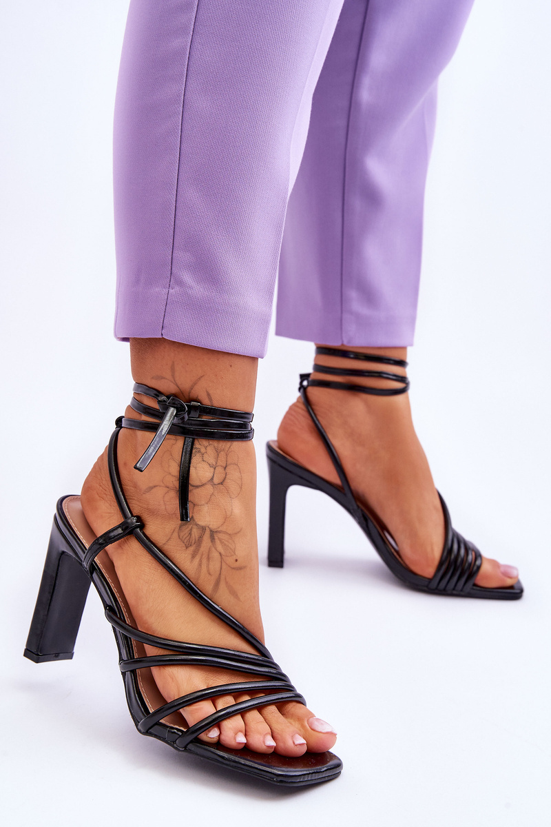 Elegant women's sandals are made of eco leather. The model has a binding around the calf. The sandals were set on a flat heel in the form of a post. The soft insole made of eco leather will ensure comfortable use of the footwear. Sandals have an open, square toe. This cut is perfect for summer dresses or elegant trousers. When choosing a size, please refer to the size chart.