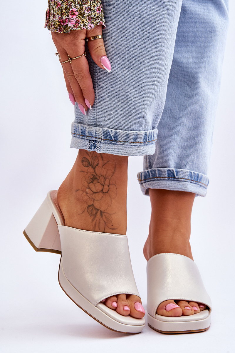 Fashionable Heeled Slippers Sergio Leone KL322 Pearl