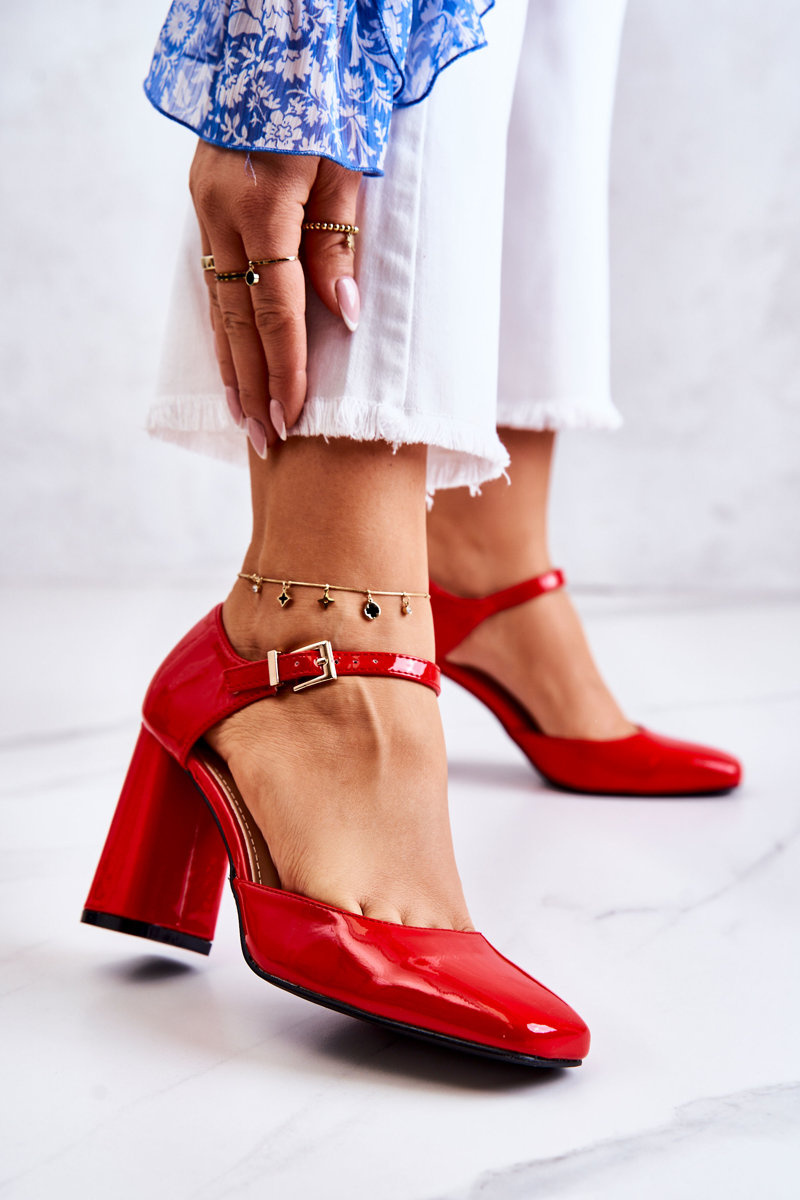 Classic pumps made of patent eko leather. They look beautiful on the leg. The heel in the form of a stable post. Fastened around the ankle with an adjustable strap with a buckle. Covered, square toe. A soft, eco-leather insole will provide comfort at every step. Fashionable and stylish pumps will perfectly match elegant, wide trousers or a jacket-style dress. Versatility, elegance and comfort - these features perfectly define this model of pumps! When choosing a size, please use the size chart