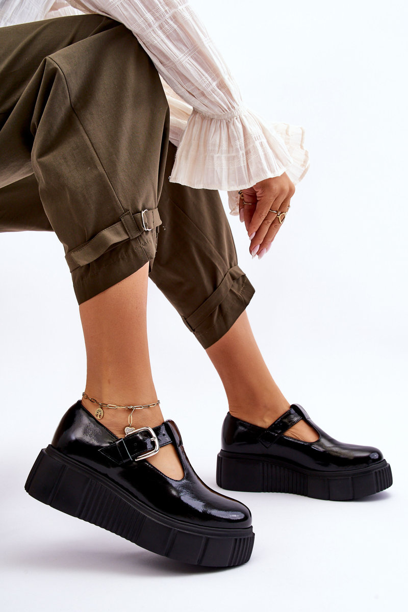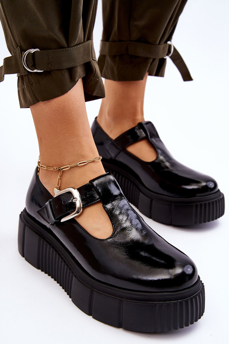 Fashionable Lacquered shoes on a massive platform Black Colson