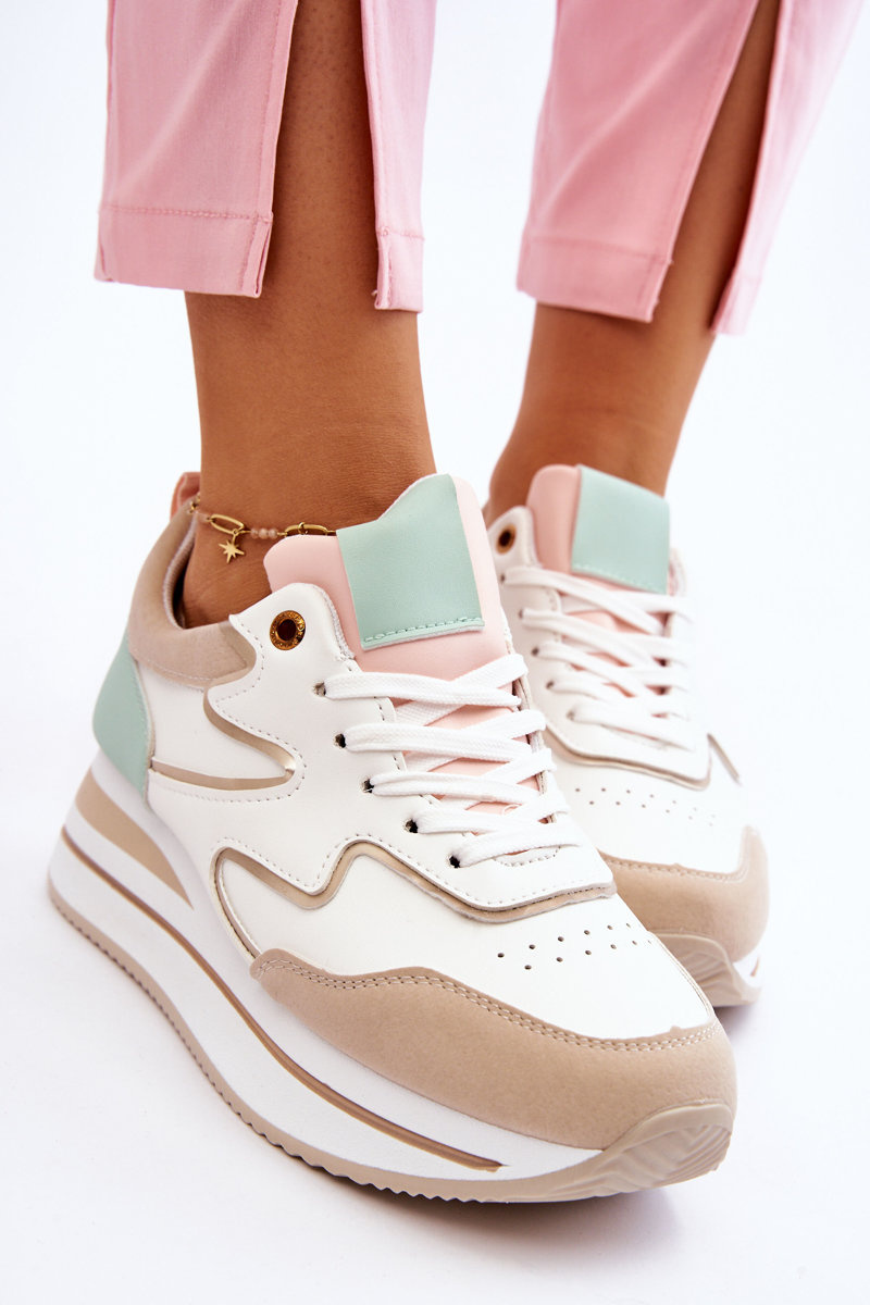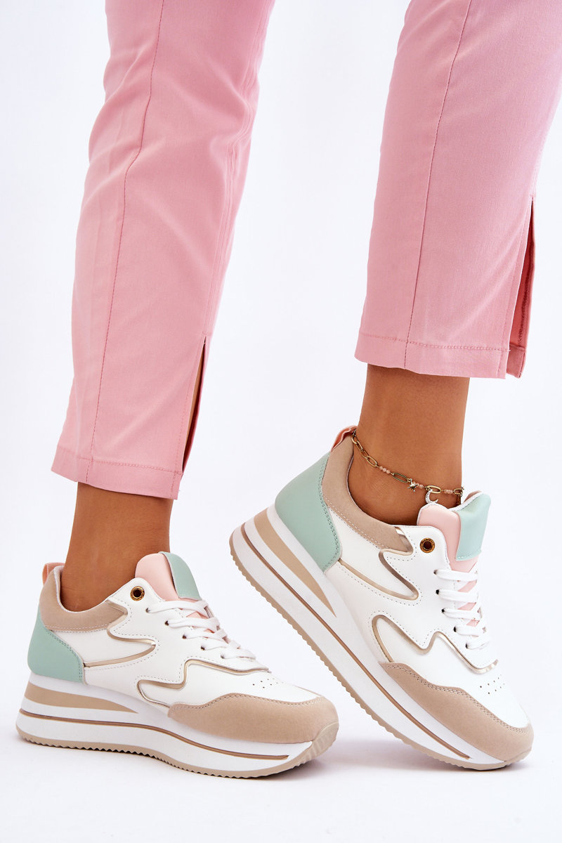 Fashionable sports shoes with an interesting cut are made of eco leather. They have a delicate perforation at the nose. Set on a platform and a delicate wedge heel. The soft insole is made of material. The footwear has a classic lacing. When choosing a size, please refer to the size chart.
