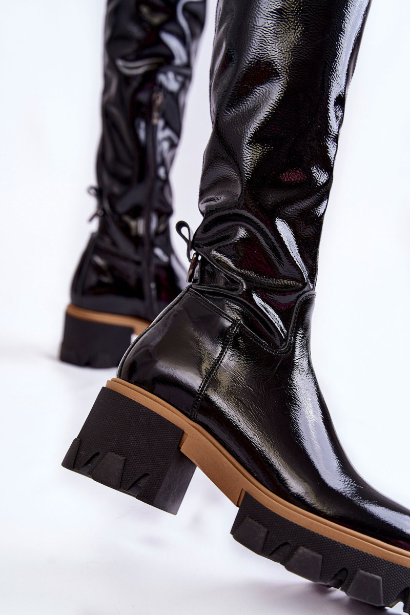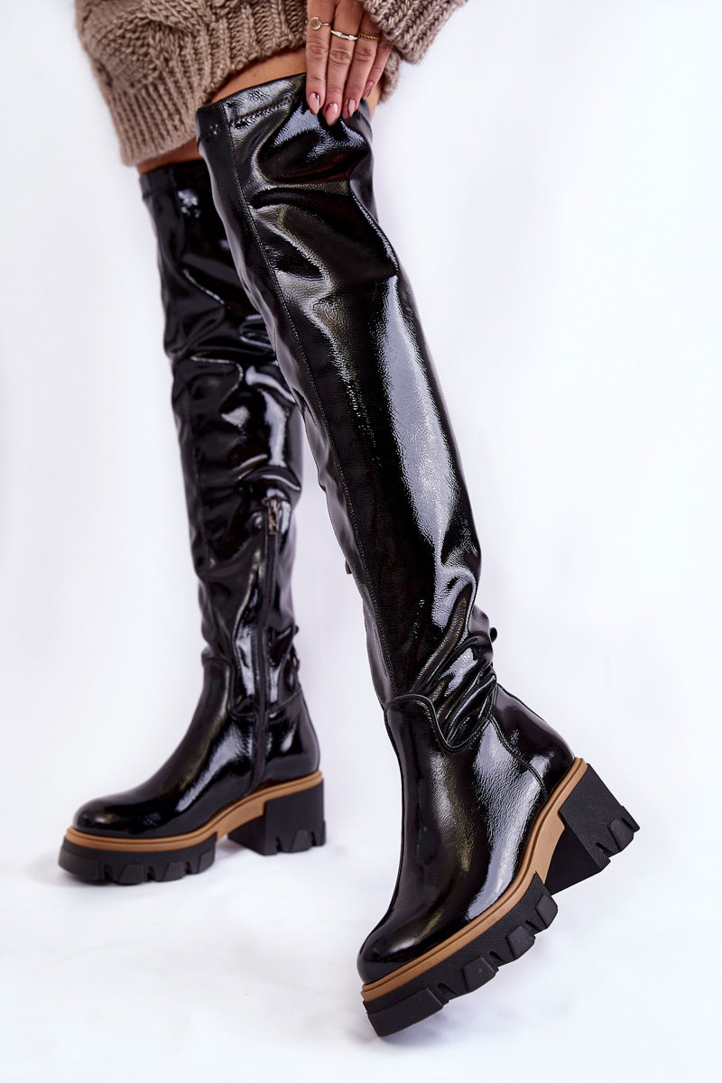 Fashionable Patent Leather Women's Boots Over The Knee Black Venise