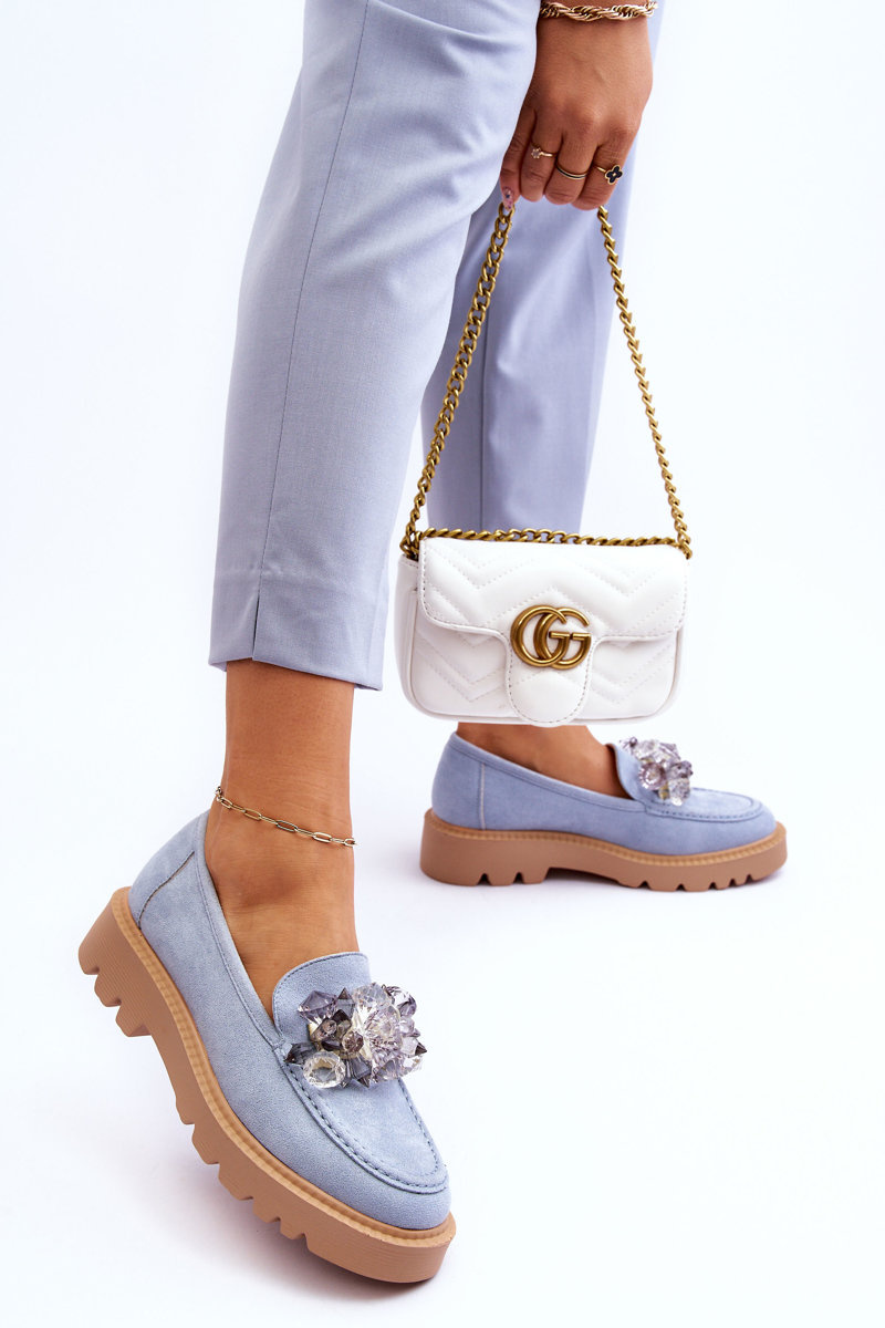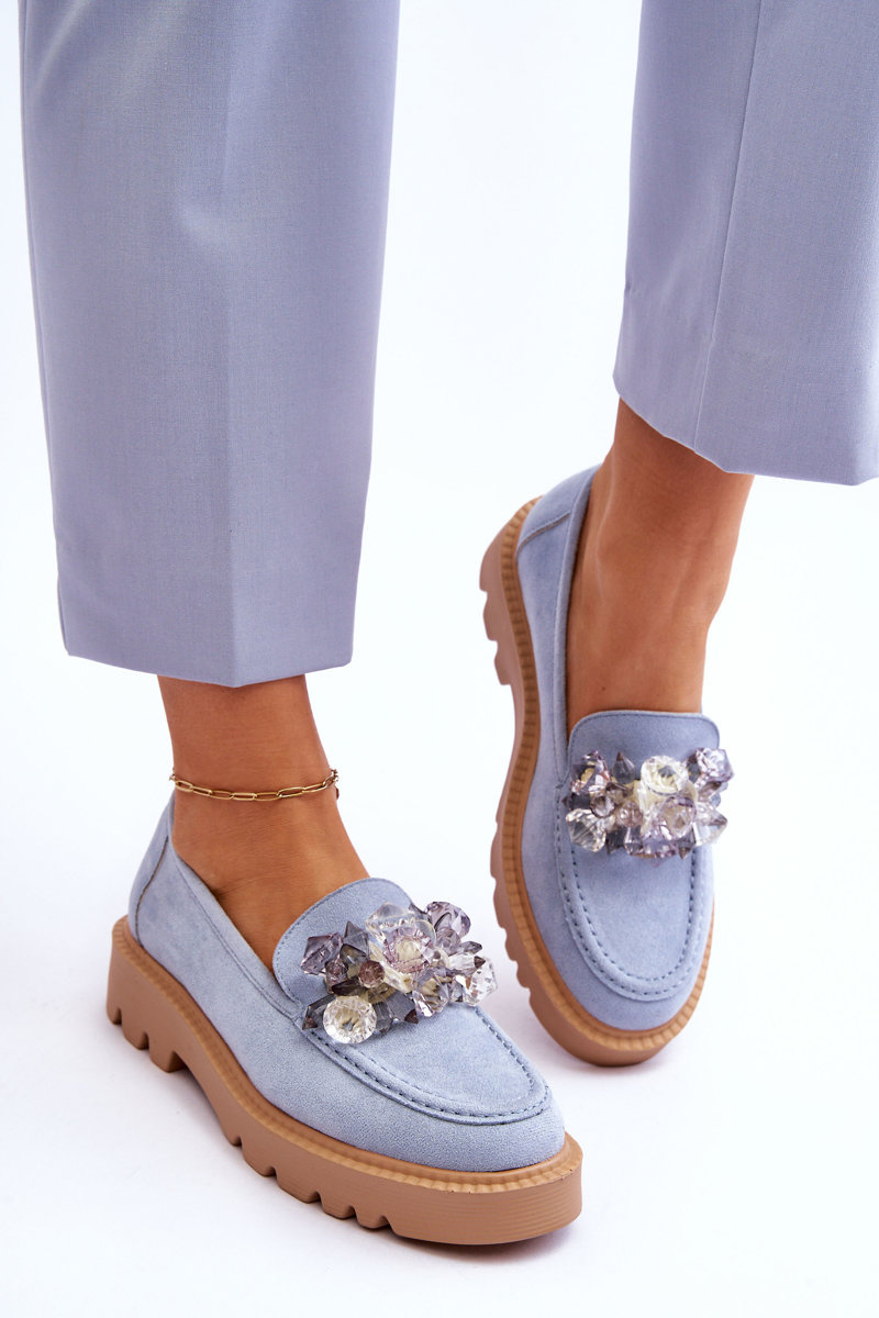 Fashionable suede moccasins with crystals Blue Demeris