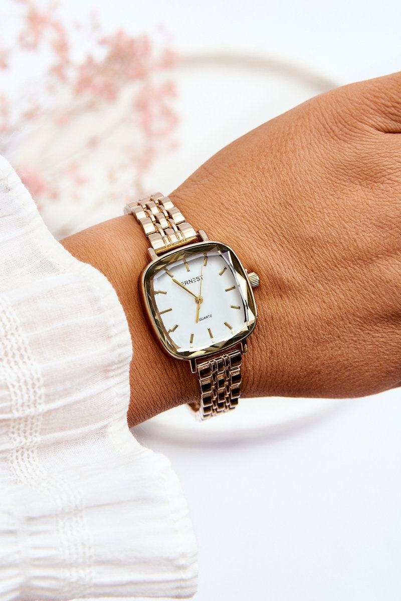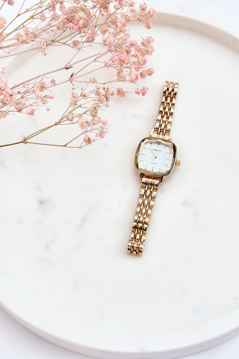 Beautiful, women's watch made of stainless steel. Bracelet fastened with a clasp. The square shape of the case and the interesting pattern of the glass make the watch look modern and fashionable. Perfect for women who value an elegant look. This watch will look great with many styles.