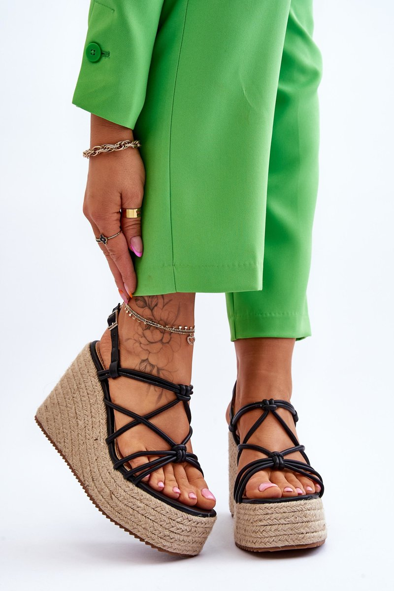 Fashionable Wedge Sandals With Braid Black Nessia