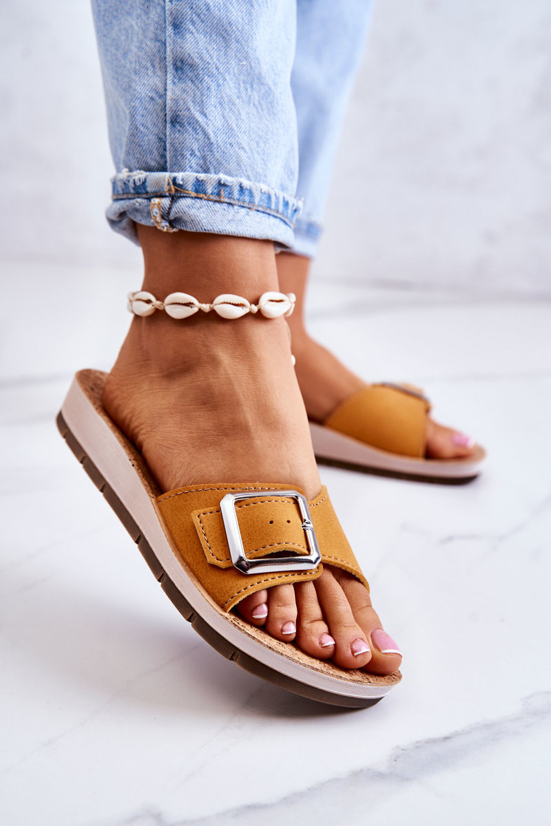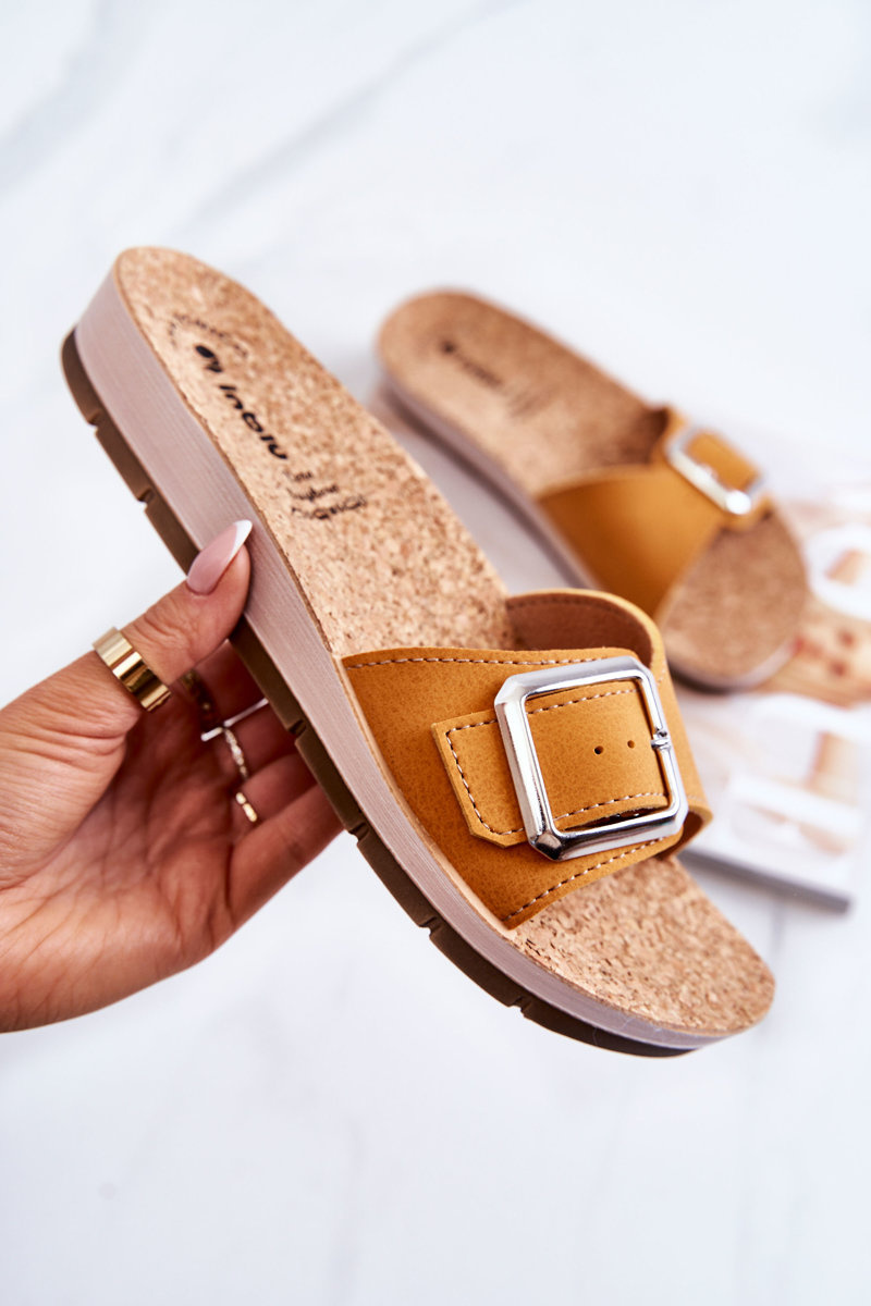 Fashionable Women's Slippers With A Buckle Inblu CP000031 Yellow