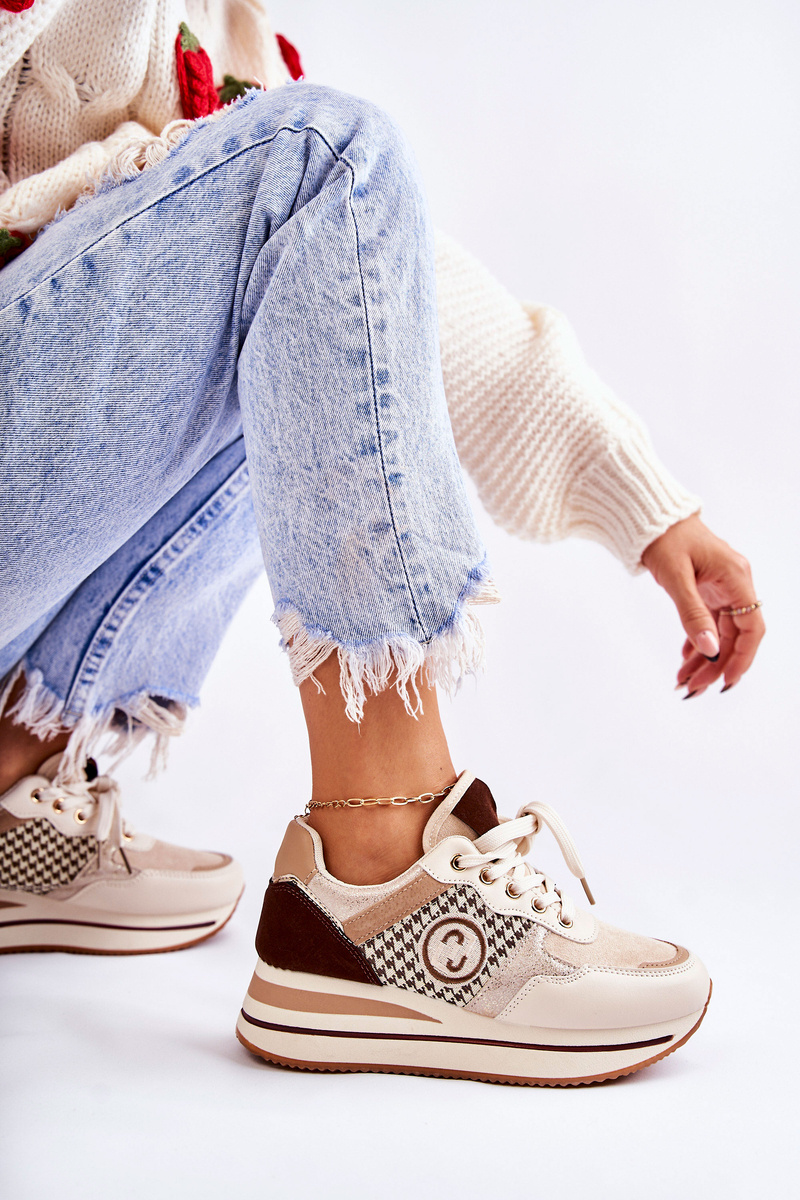 Fashionable Women's Sport Shoes On A Wedge Beige and brown Aronne