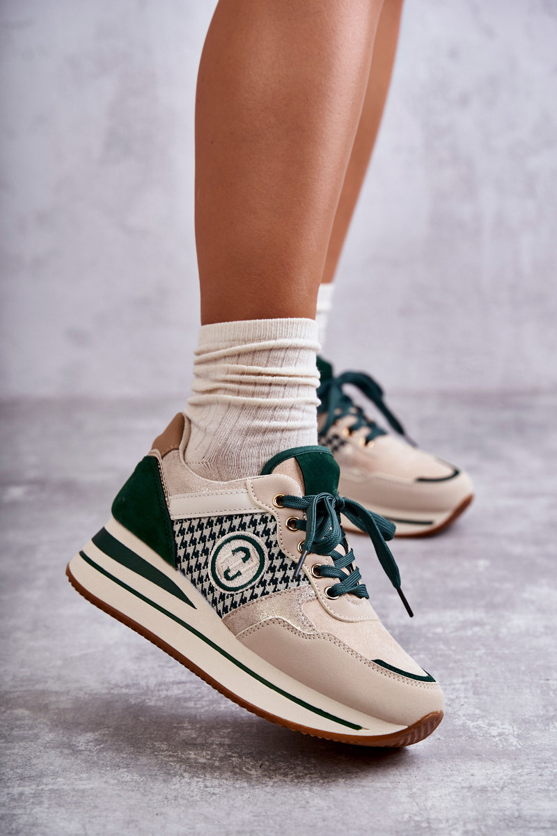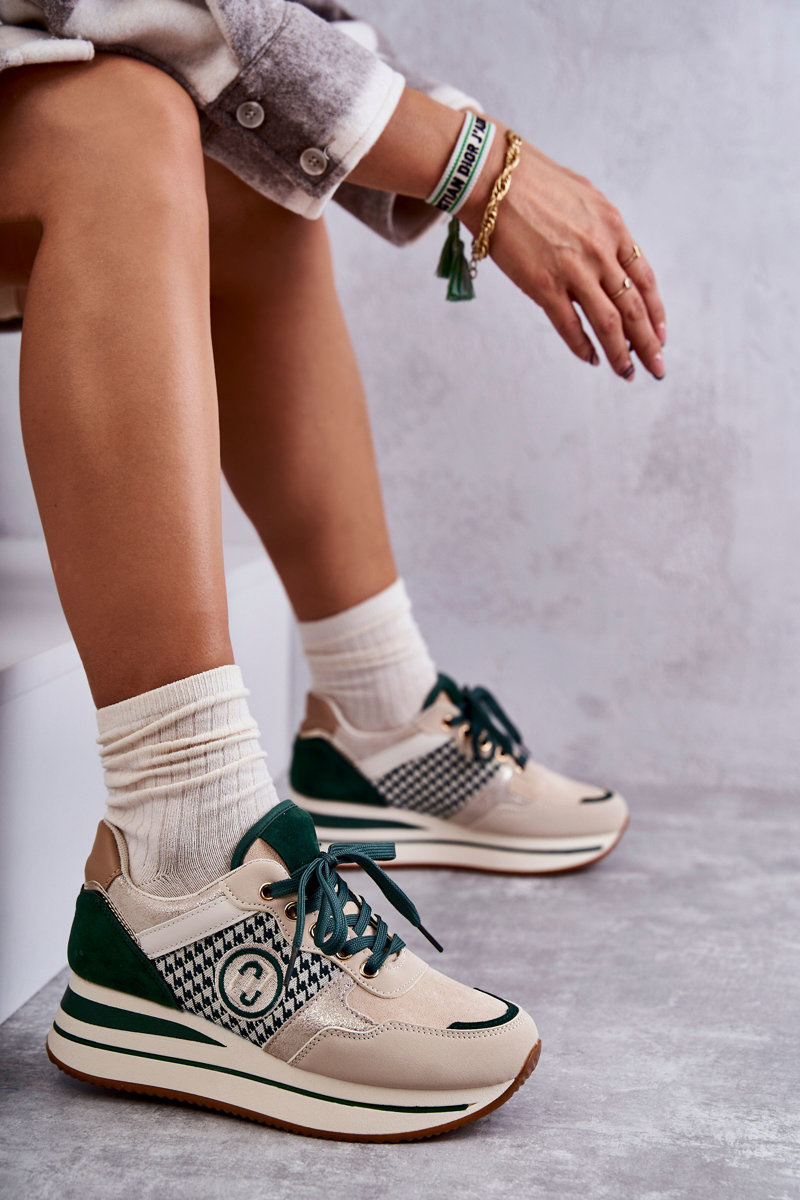 Fashionable Women's Sport Shoes On A Wedge Beige-Green Aronne
