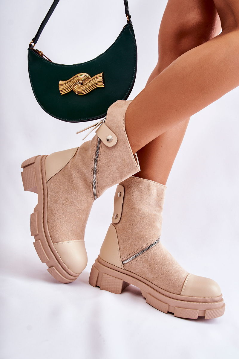 Fashionable Women's Suede Boots With Zipper Beige Kandell