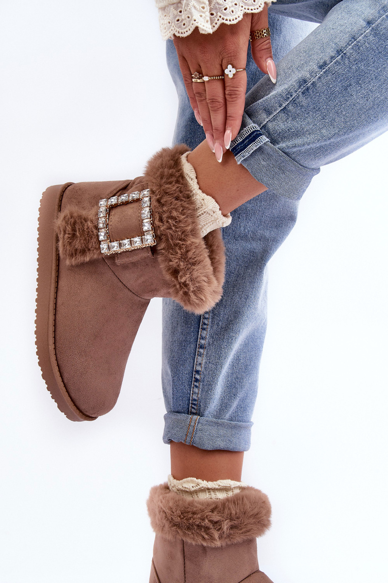 Faux Fur-Lined Clasp Snow Boots Dark Beige Dulca