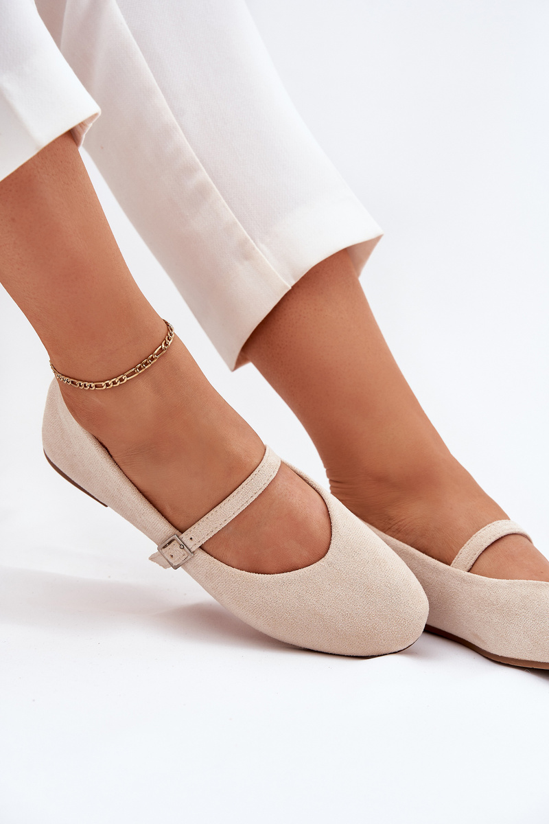 Flat Ballerinas With Strap Eco Suede Beige Tirilina