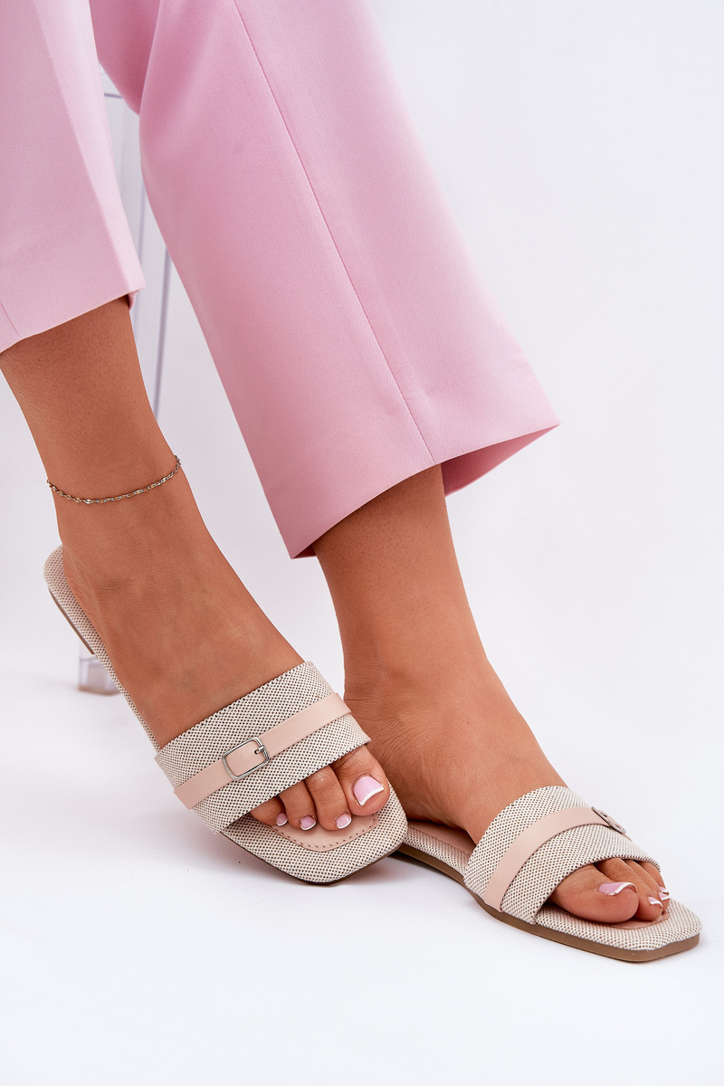 Flat Women's Slippers With Strap And Buckle Beige Zilina
