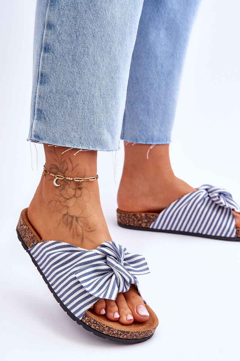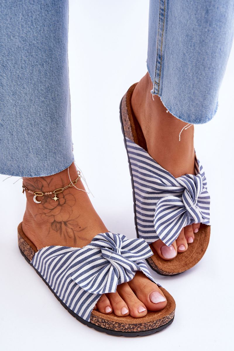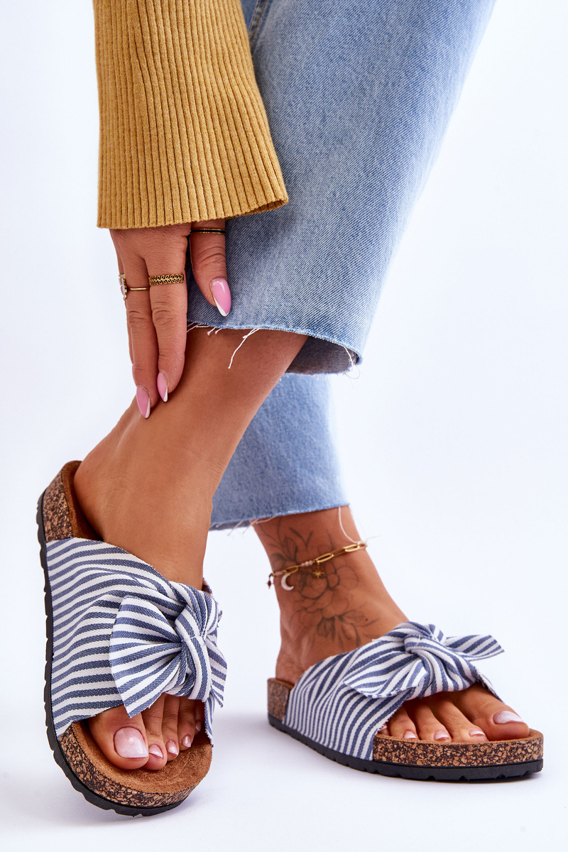 Flip Flops On Cork Platform With White And Blue Stripes Festive