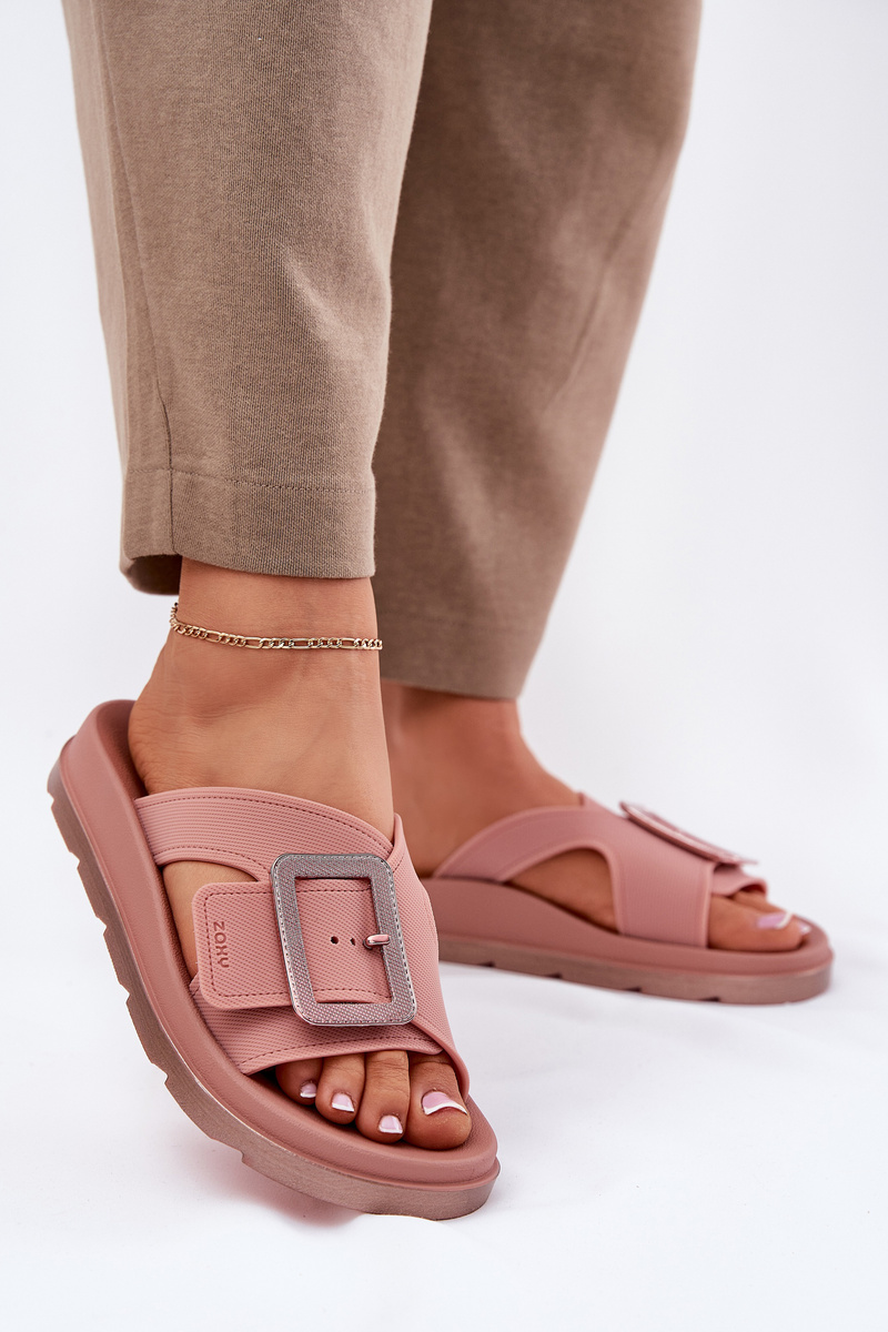Fragrant women's flip flops with decorative buckle ZAXY RR285077 dirty pink