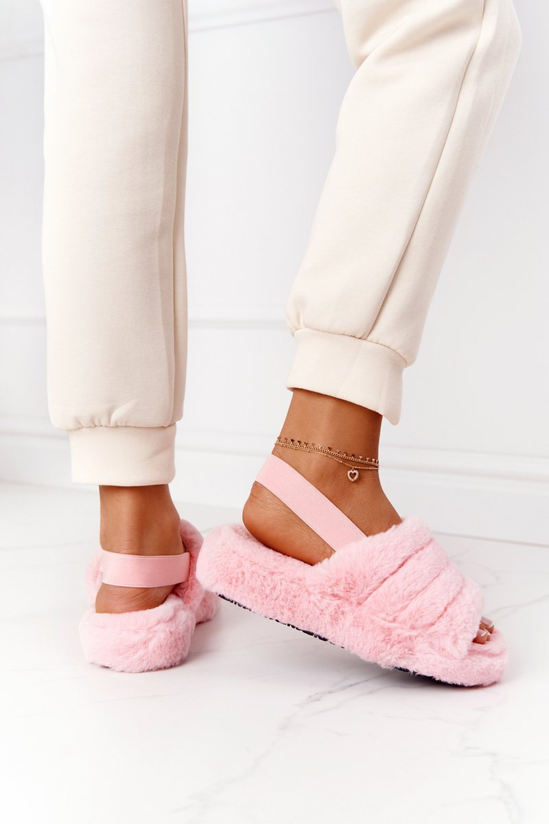 Furry Slippers On The Platform Light Pink Snowflake