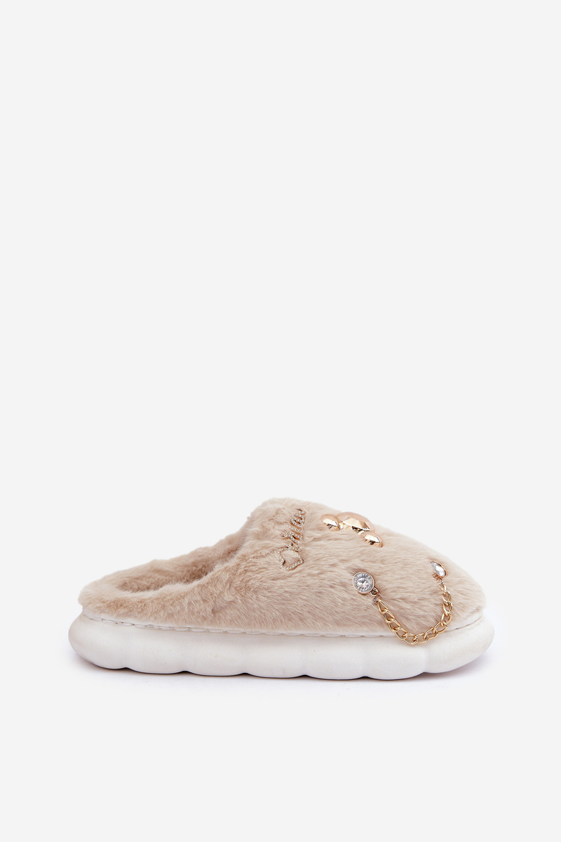 Stylish women's fur slippers with trendy pins are a perfect choice for cold days. Made of soft and warm material, they provide exceptional wearing comfort. Ideal for relaxing at home. Possible slight discolorations on the sole!! When choosing a size, please refer to the size chart.
