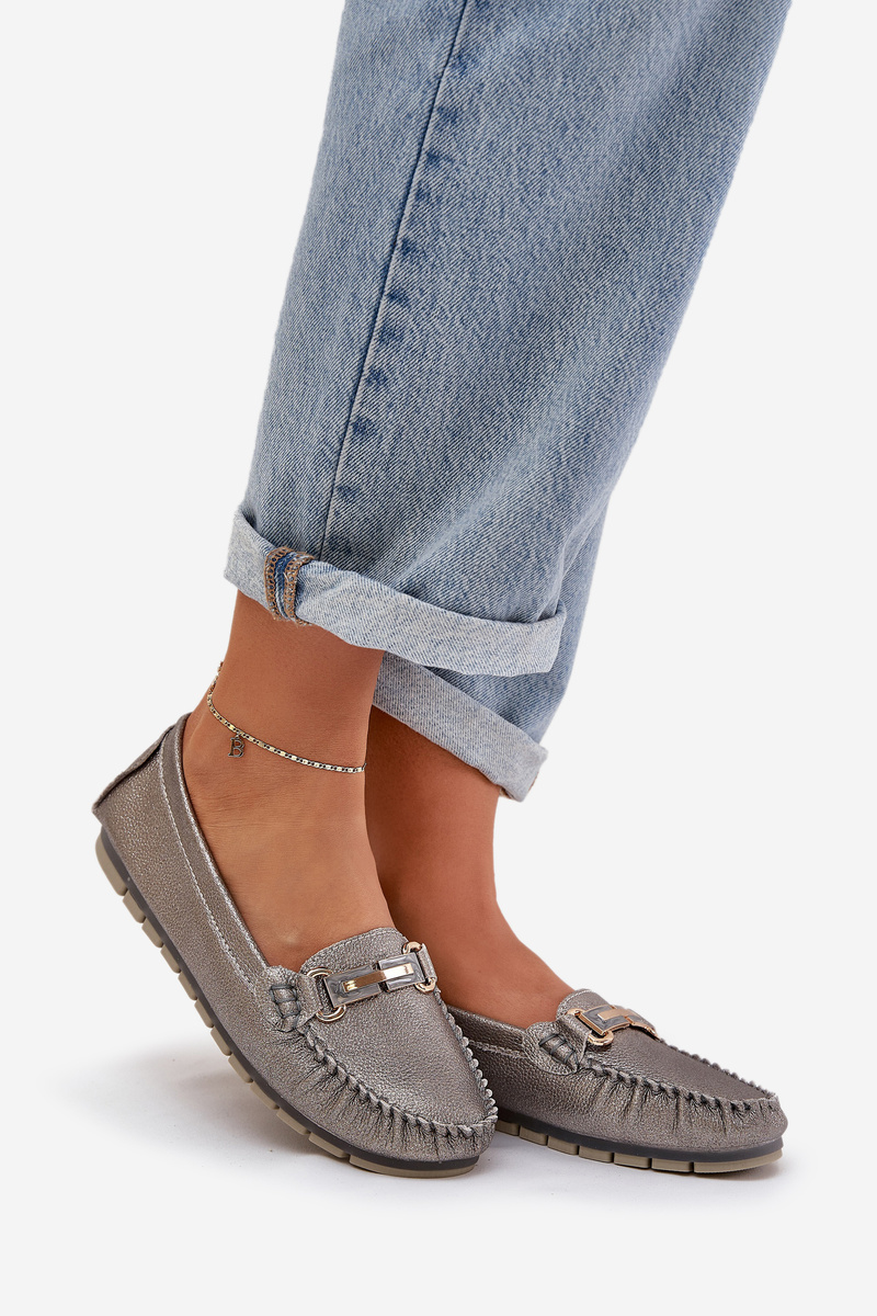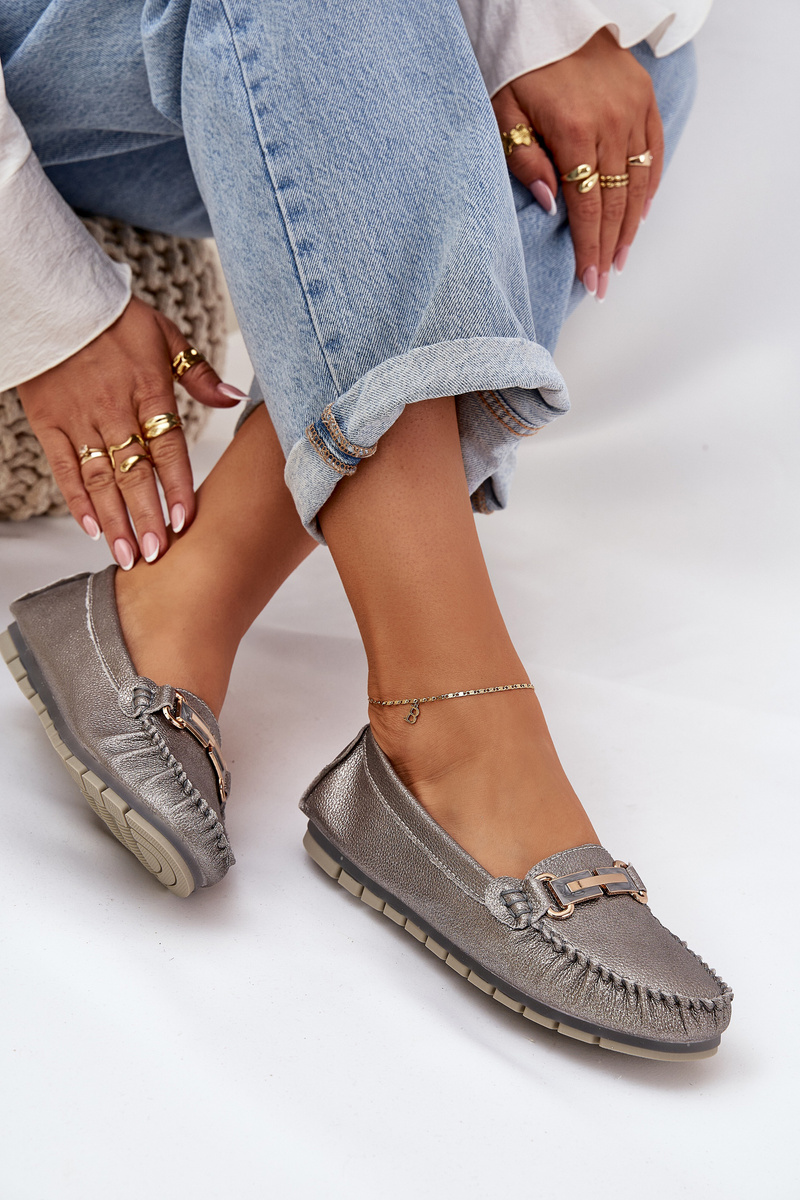 Glitter Flat Moccasins Made Of Natural Leather D&A LR51-546 Silver