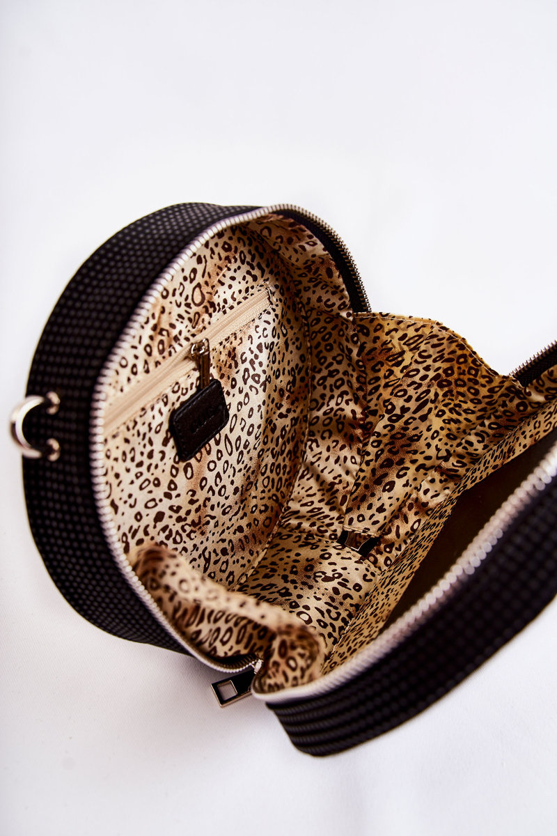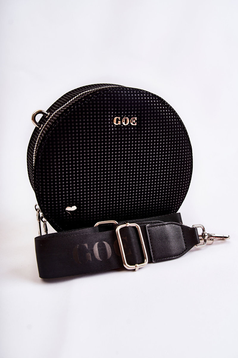 A beautiful handbag - a trunk from the GOE brand! Made of high quality material. On the front there is the GOE brand logo and a decorative emblem in the form of a heart. The bag has one compartment closed with a zipper. In the middle there is one open pocket and one closed with a zipper. Lining made of fabric with a decorative pattern. The bag has one adjustable, detachable strap.