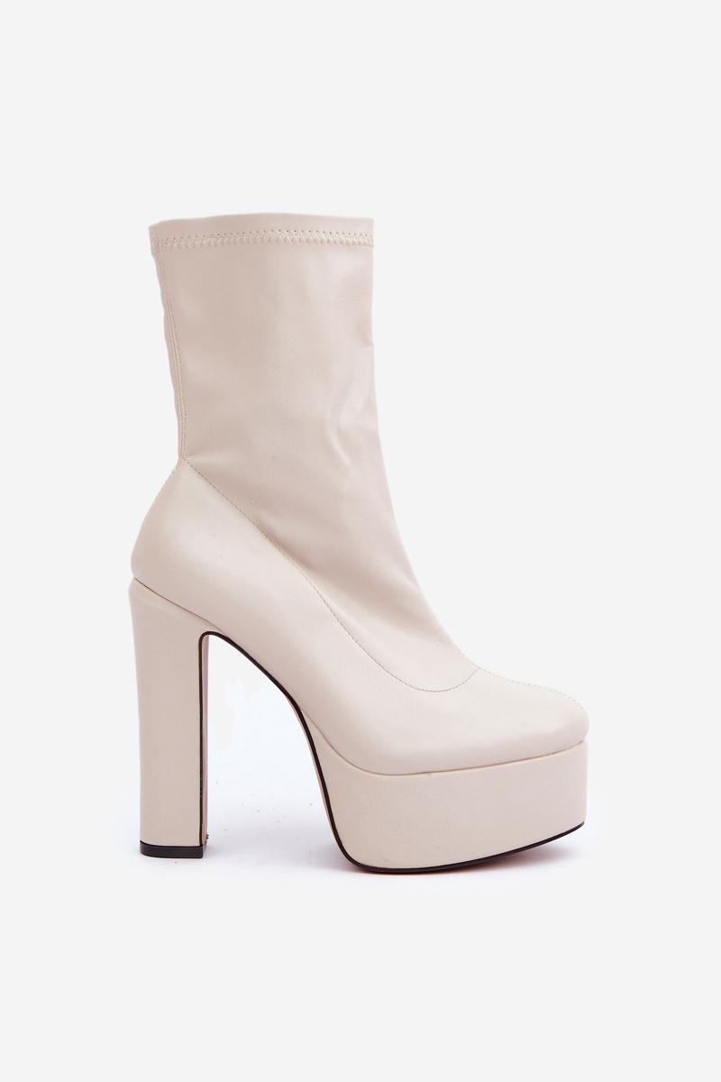 Women's boots made of eco-friendly leather. This model features a massive platform and a high block heel. Fastened with a zipper. The interior is insulated only at foot level. Almond-shaped toes. Stylish and feminine, great for various occasions! When choosing a size, please refer to the size chart.