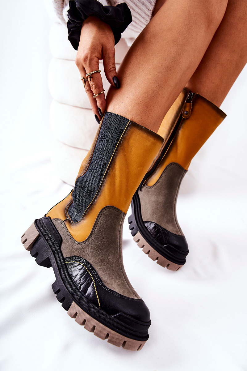 High Leather Boots Maciejka Yellow-grey 05141-07