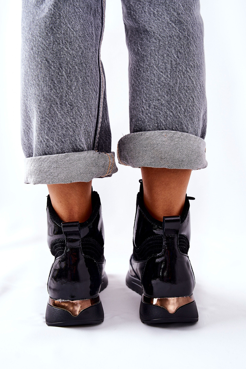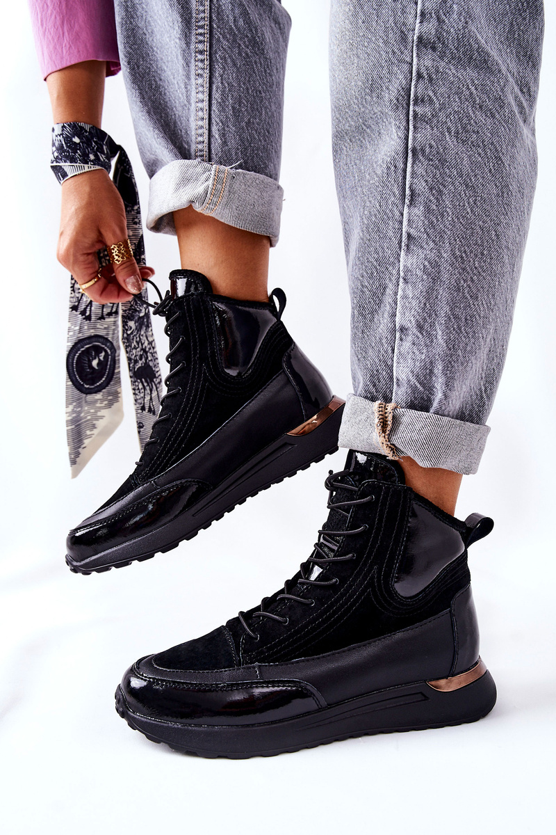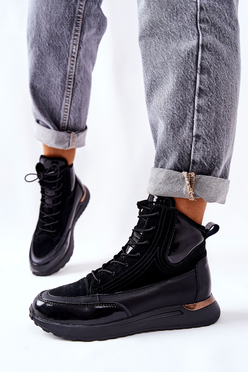 The tall sports shoes have been made from leather. They have elastic laces that allow to fit the shoe properly. Warmed inside with shoe blanket. The toe is slightly raised. Check out other models of tall sports shoes and buy your favourite model! Follow the size chart when choosing the size.